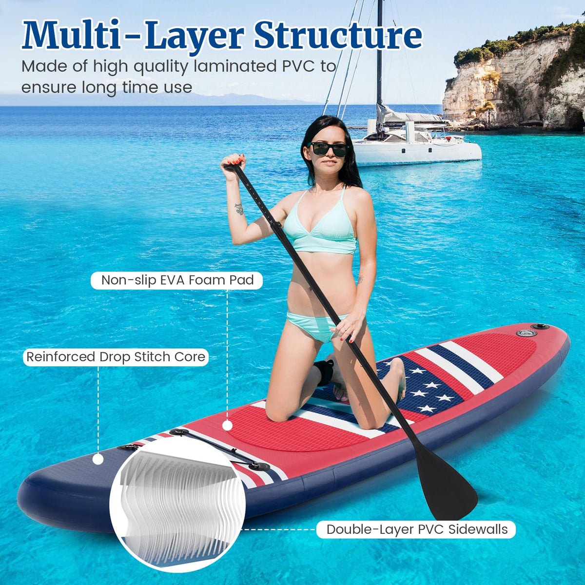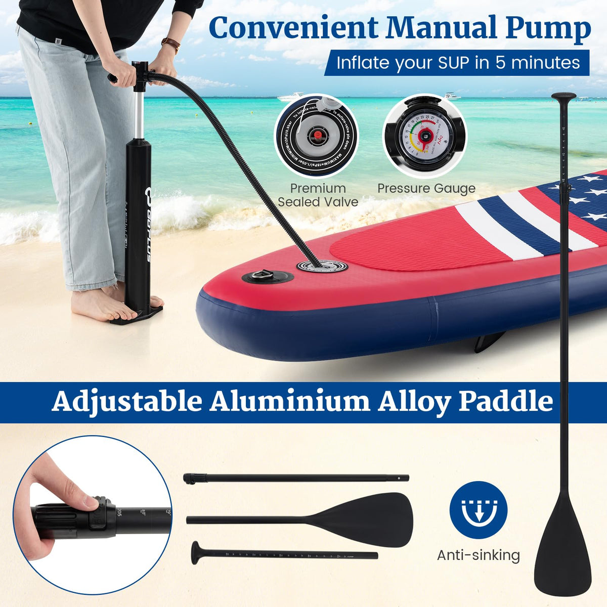 GYMAX Stand Up Paddle Board, Inflatable SUP with Wide Non-Slip EVA Deck, Accessories-Leash