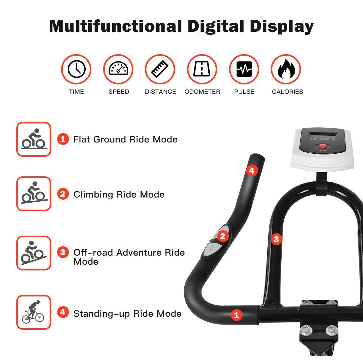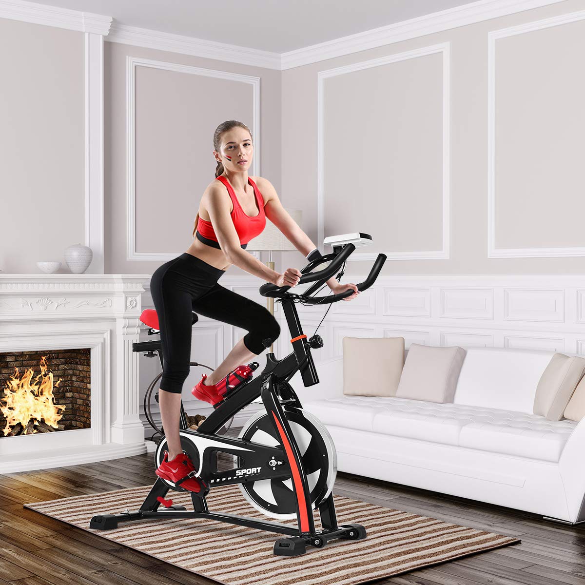 - 【Heavy-duty Flywheels & Silent Belt Drive System】Designed for high speed and stability, the flywheel creates more momentum, giving real outdoor ride experience. Also, the silent belt drive mechanism ensures smooth and quiet workouts without disturbing others.
