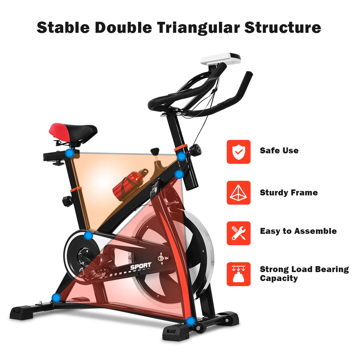 GYMAX Stationary Bike, Indoor Cycling Bike with LCD Monitor & Heart Sensor, Adjustable Resistance