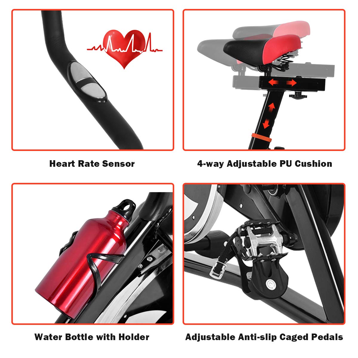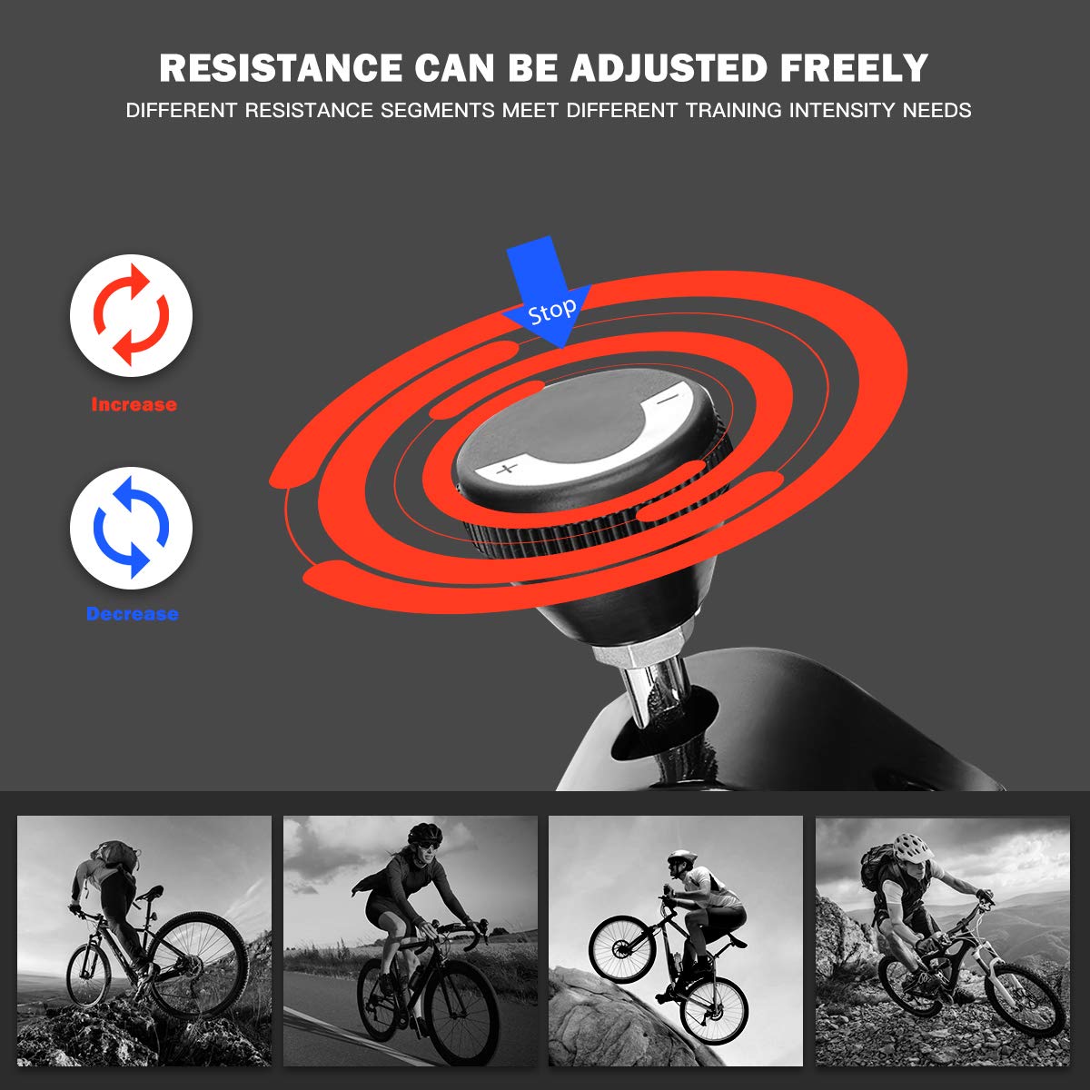- 【Adjustable Resistances & Emergency Brake】This exercise bike has an excellent tension control system allowing you to adjust workout intensity. Meanwhile, you can also quit workout instantly and safely by pressing the resistance adjustment knob down.