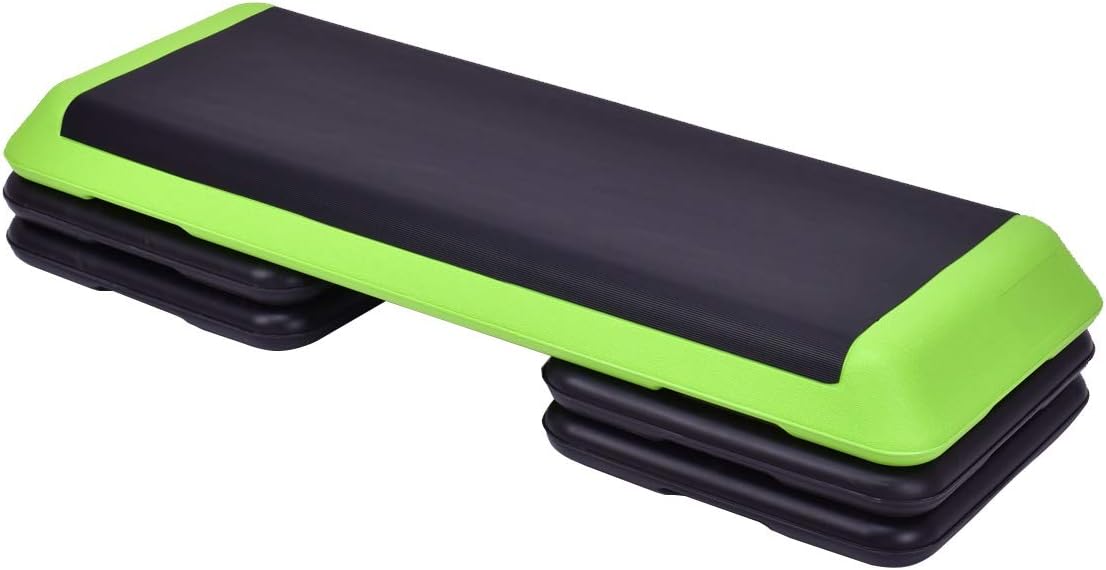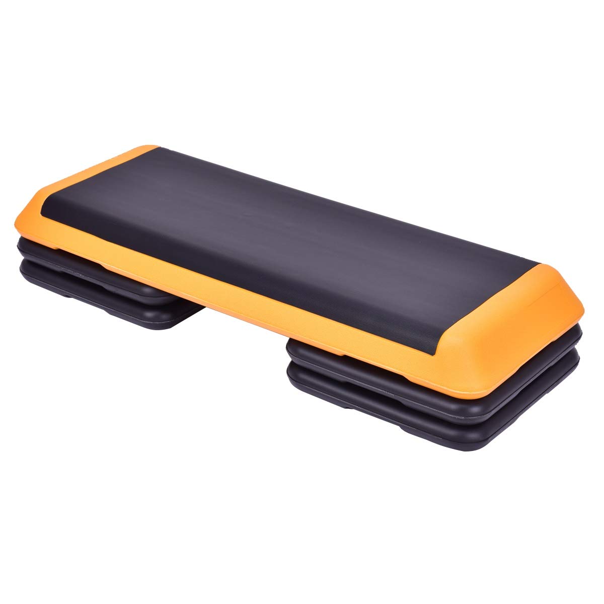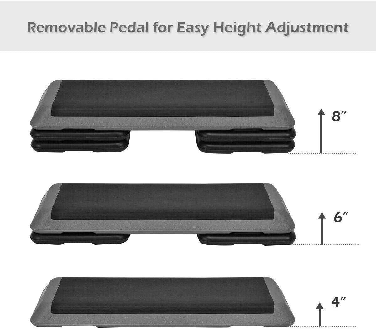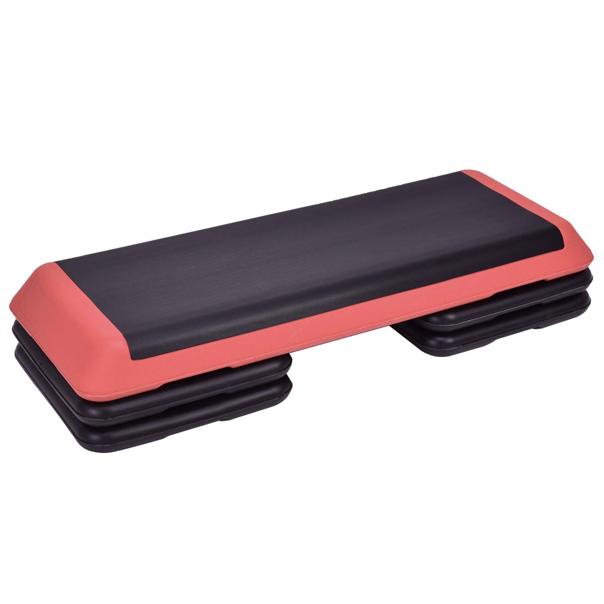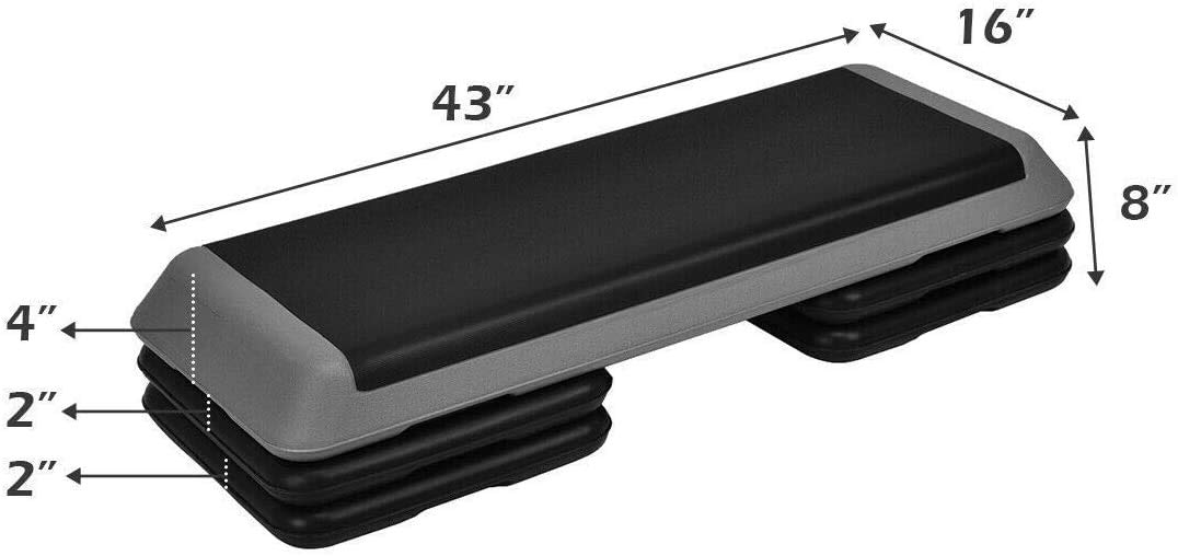 GYMAX Step Platform, 43'' Adjustable Exercise Equipment Aerobic Stepper with 4''-6''-8'' Risers for Cardio Fitness & Exercise