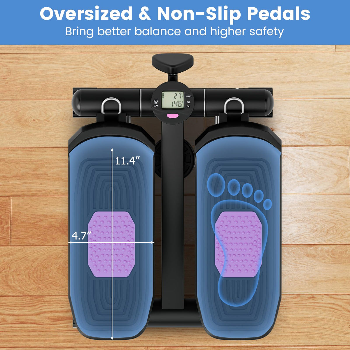 Wide and anti-slip pedals for high-level safety