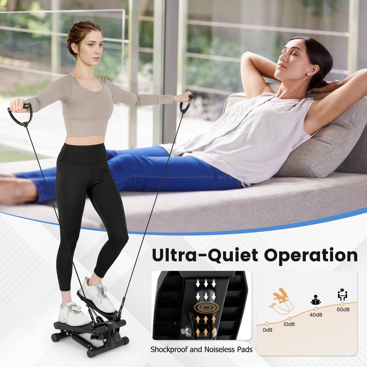 Transform your home into a personal gym with this mini stepper, designed for space efficiency and dynamic utility.