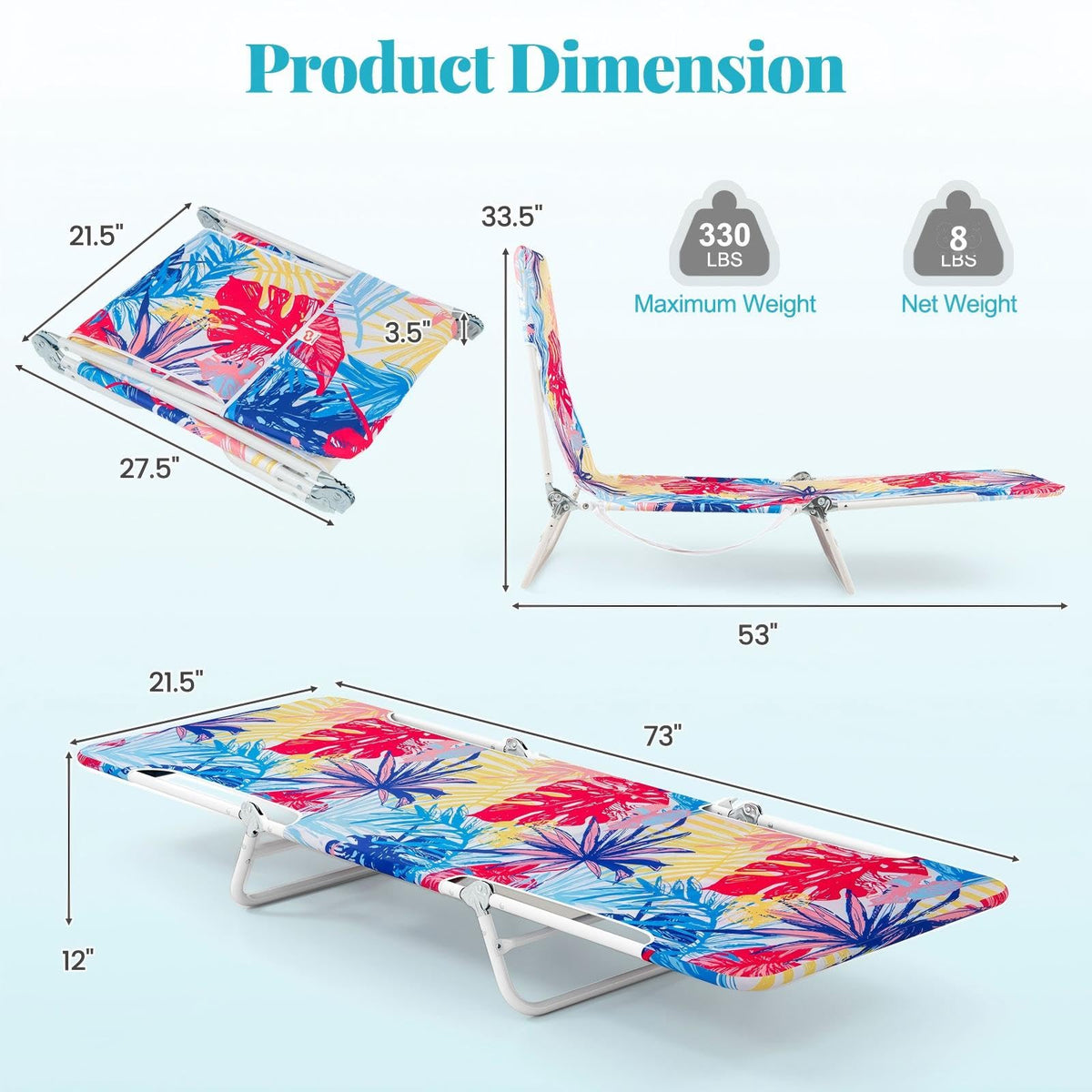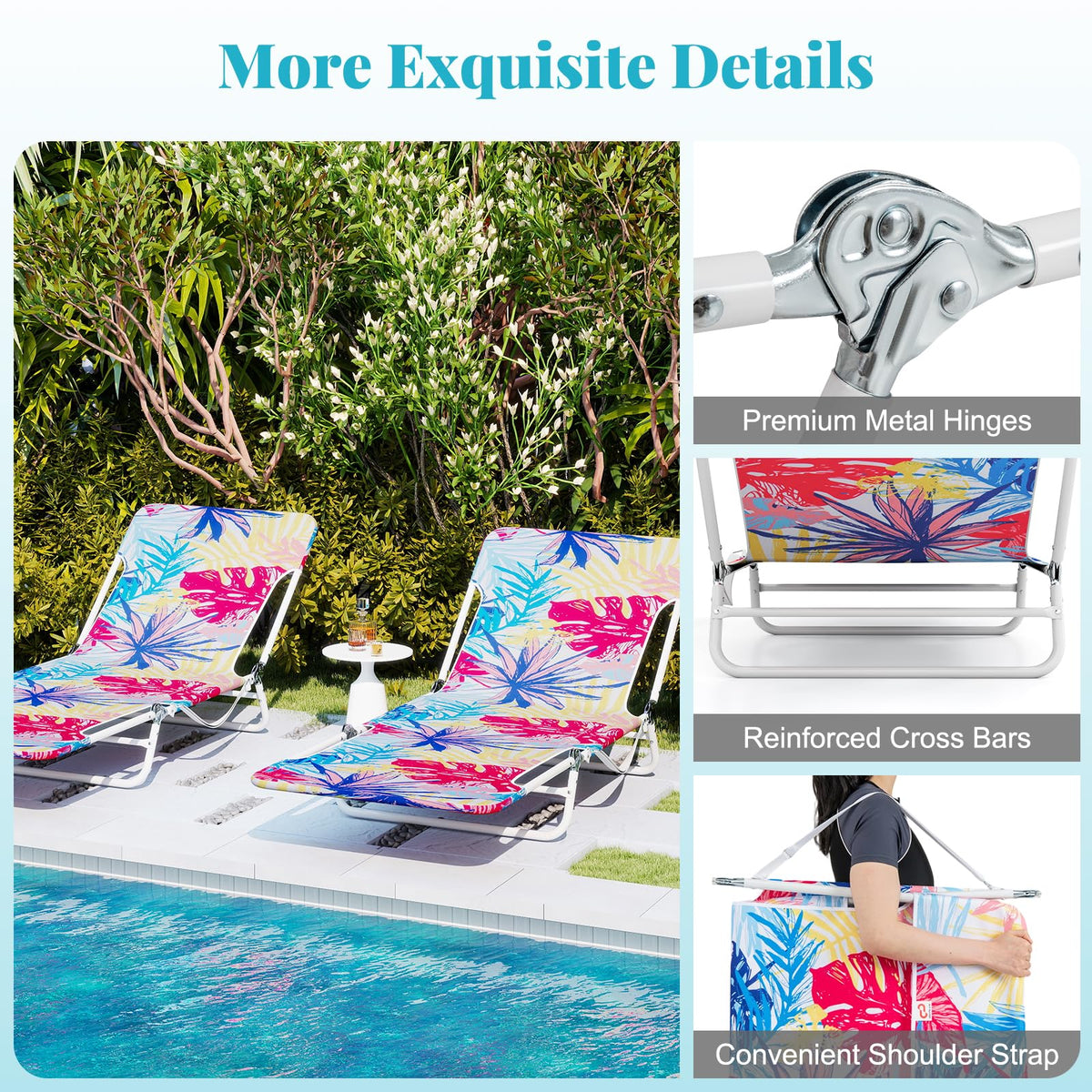 GYMAX Tanning Chair 2Pcs Folding Beach Chairs