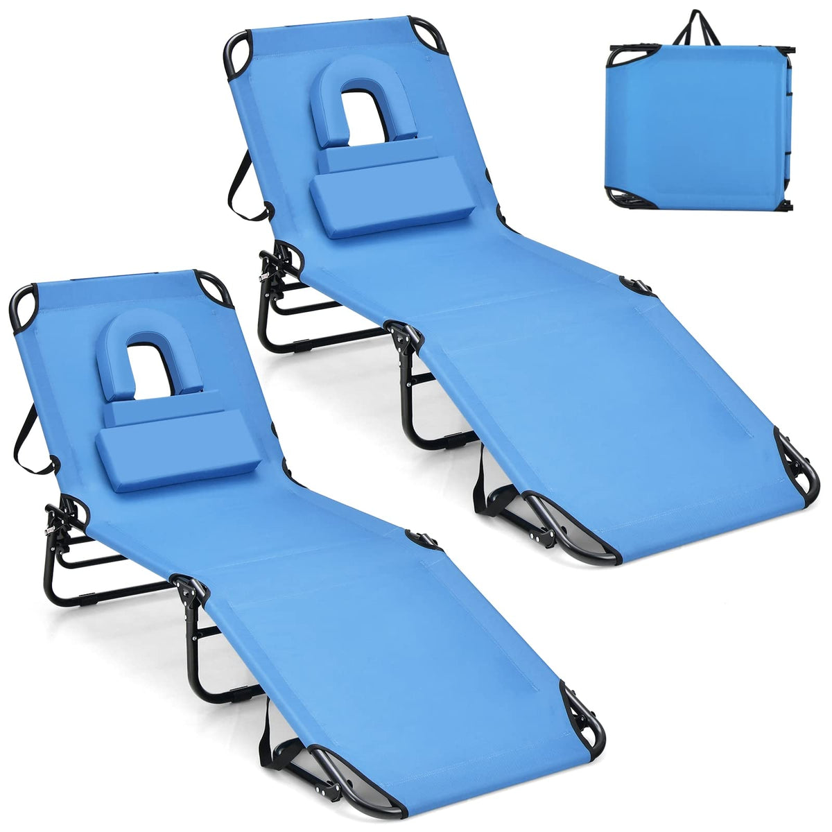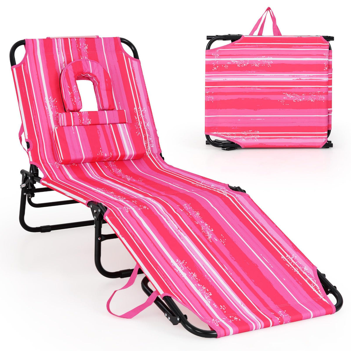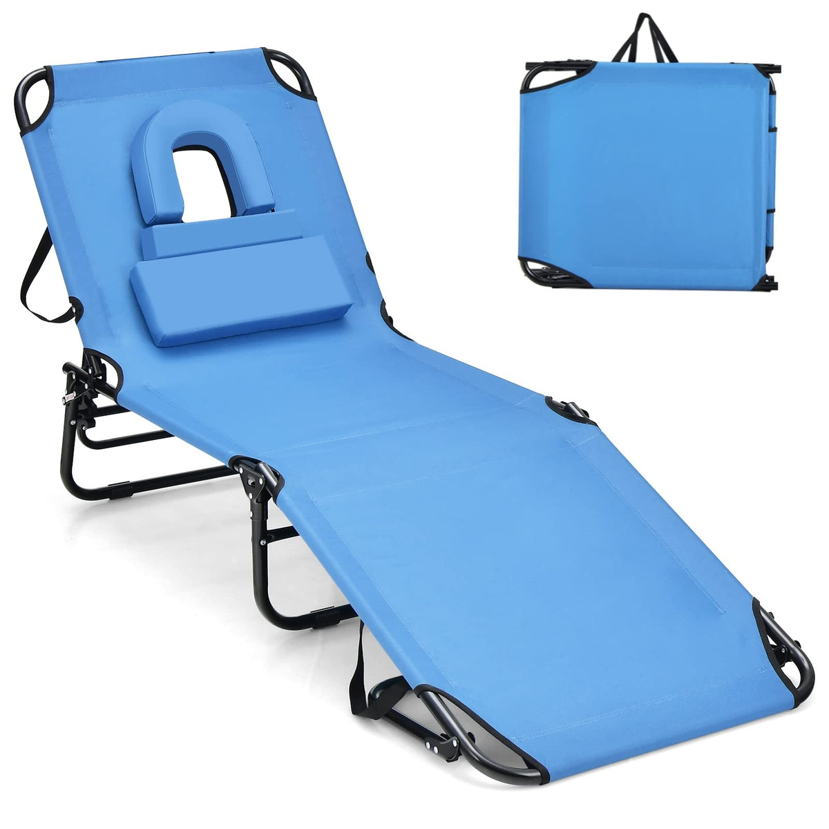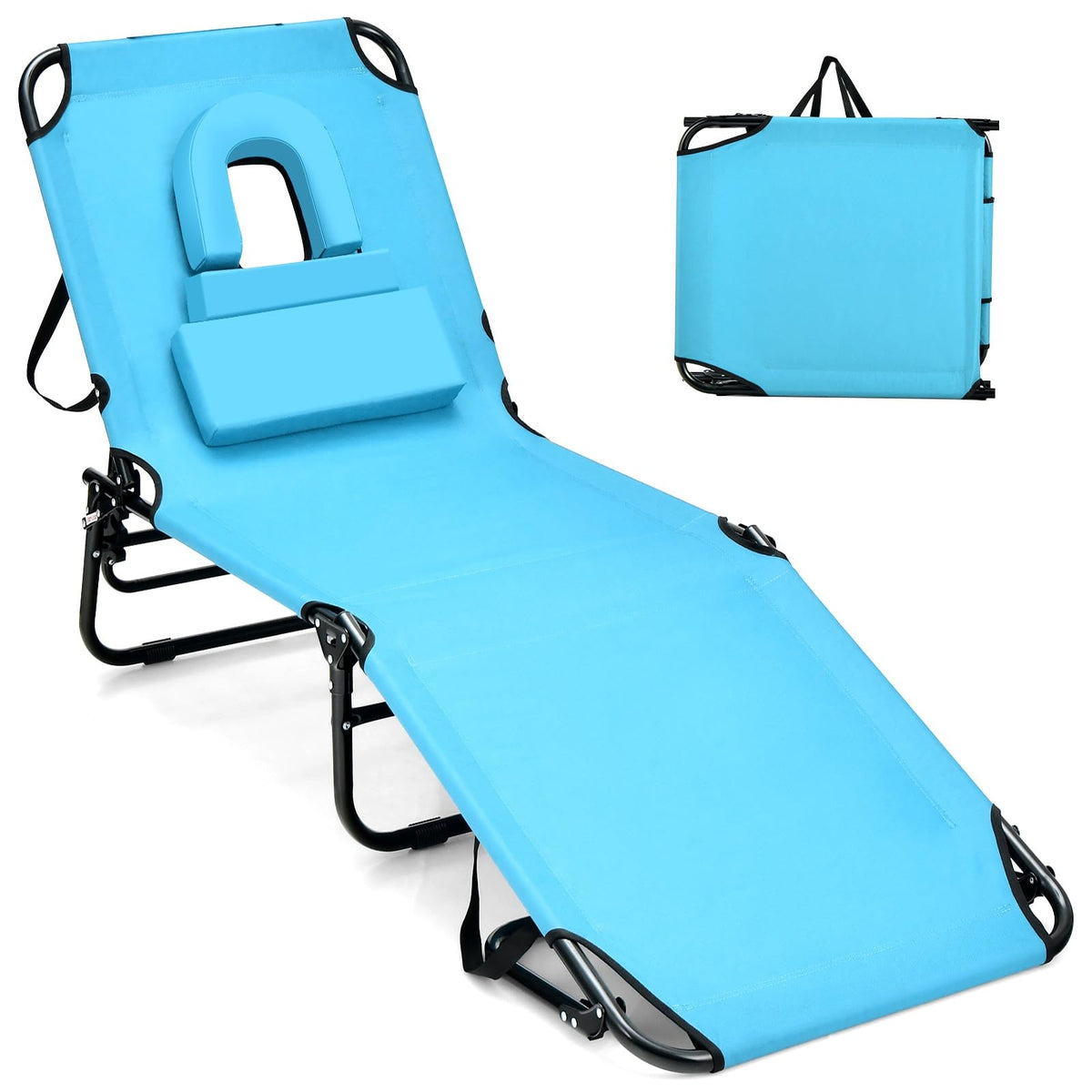 GYMAX Tanning Chair, 350lbs Beach Lounge Chair with Face Hole, Washable Pillow & Carry Strap