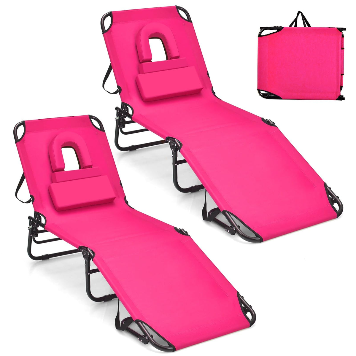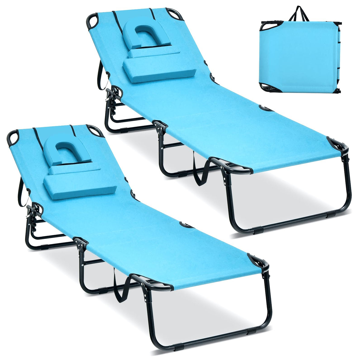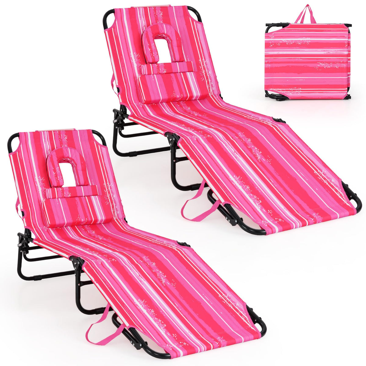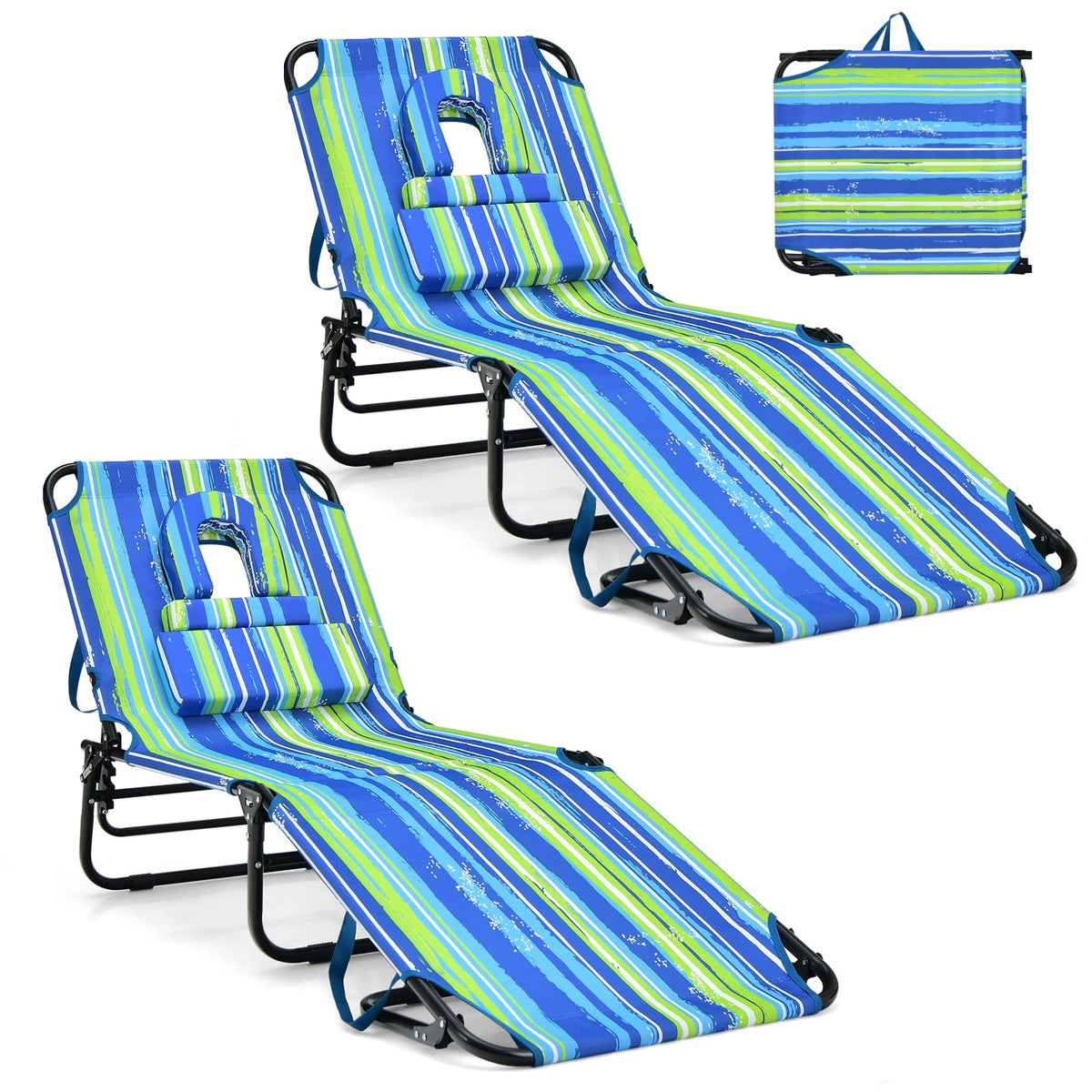 GYMAX Tanning Chair, 350lbs Beach Lounge Chair with Face Hole, Washable Pillow & Carry Strap