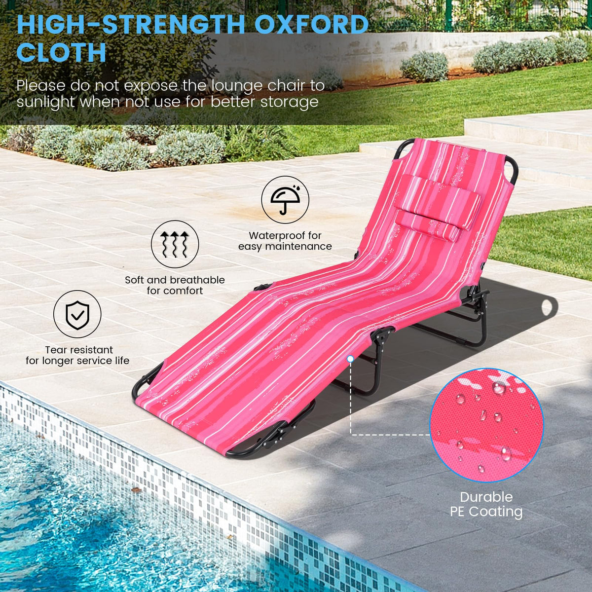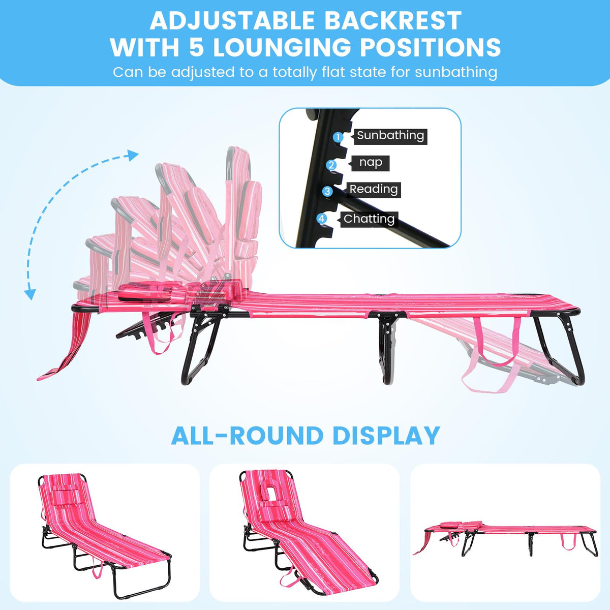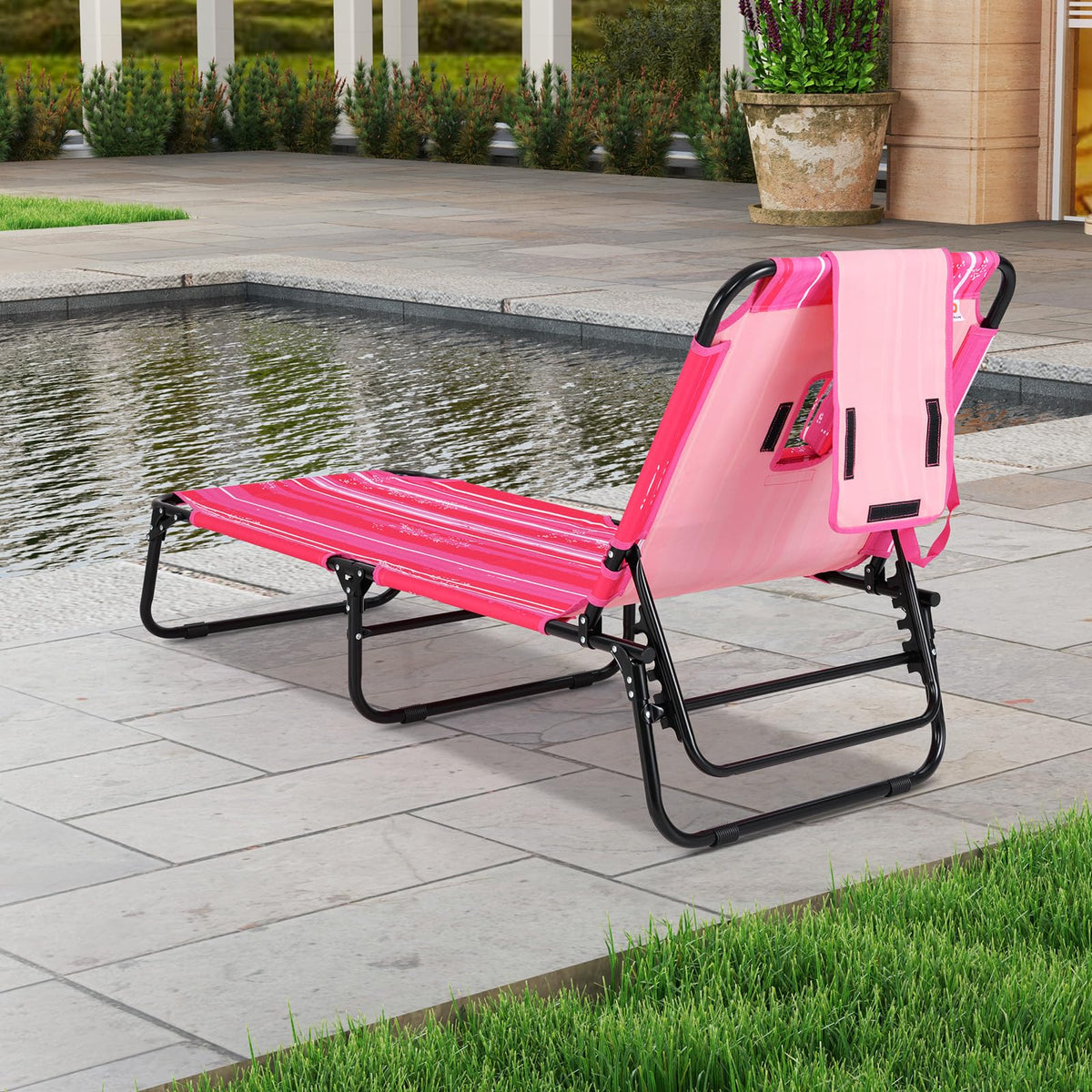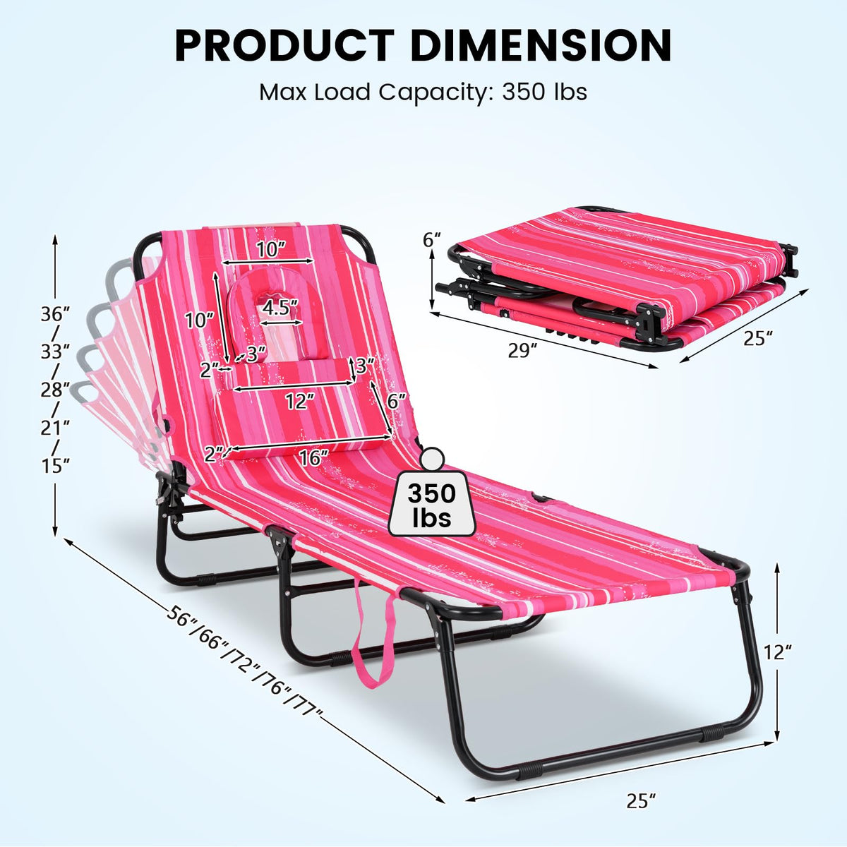 GYMAX Tanning Chair, 350lbs Beach Lounge Chair with Face Hole, Washable Pillow & Carry Strap