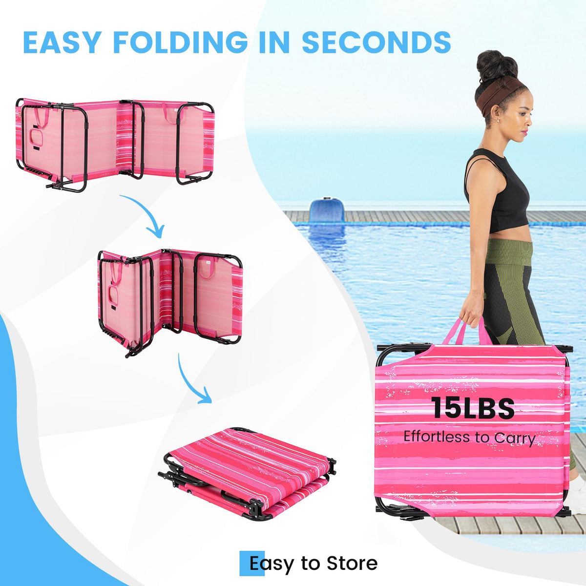 - 1s to Use & Portable Carry Strap: No tools required, the patio lounger is ready to use with only one step: open and lock the backrest in the angle you like. Measuring 77" x 25" x 12" in flat and 29" x 25" x 6" when folded, this 15 lbs lightweight chaise lounge chair is effortless to take outside. Besides, built-in straps make this folding chaise lounge more convenient to carry with one hand.