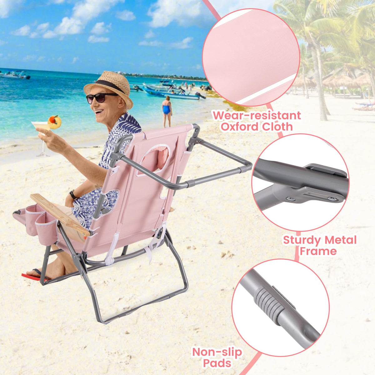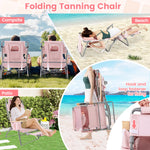 GYMAX Tanning Chairs 3 in 1 Backpack Beach Lounger