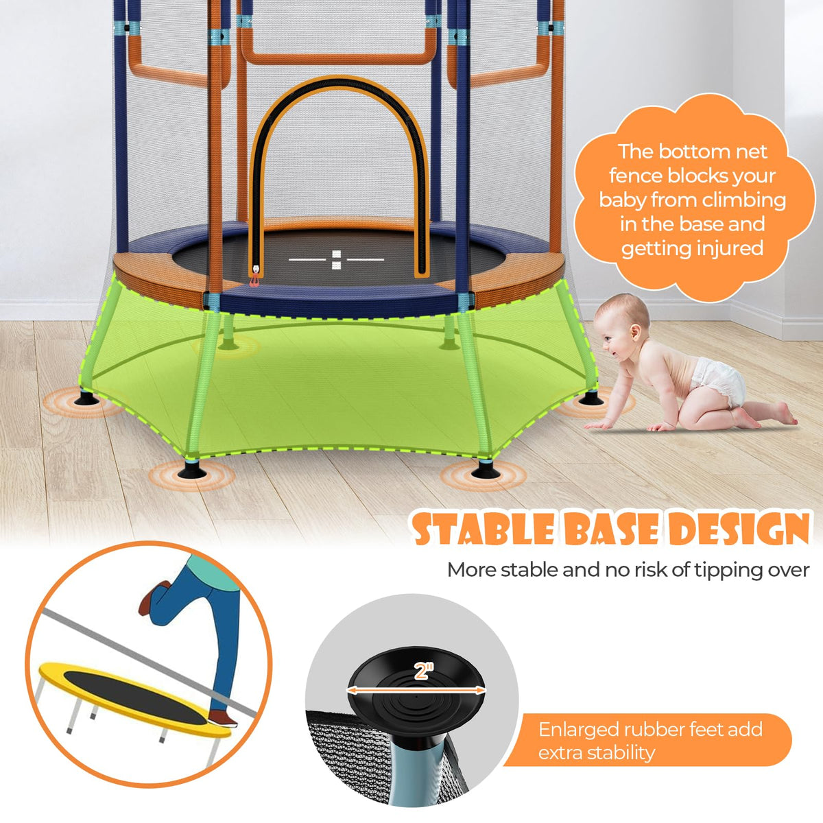 - Extra High Enclosure: Featuring a 59” extra high enclosure net, this trampoline would be a great helper for babysitting, which free your hands and allow you to keep an eye on your little one through the transparent net while do your own business.