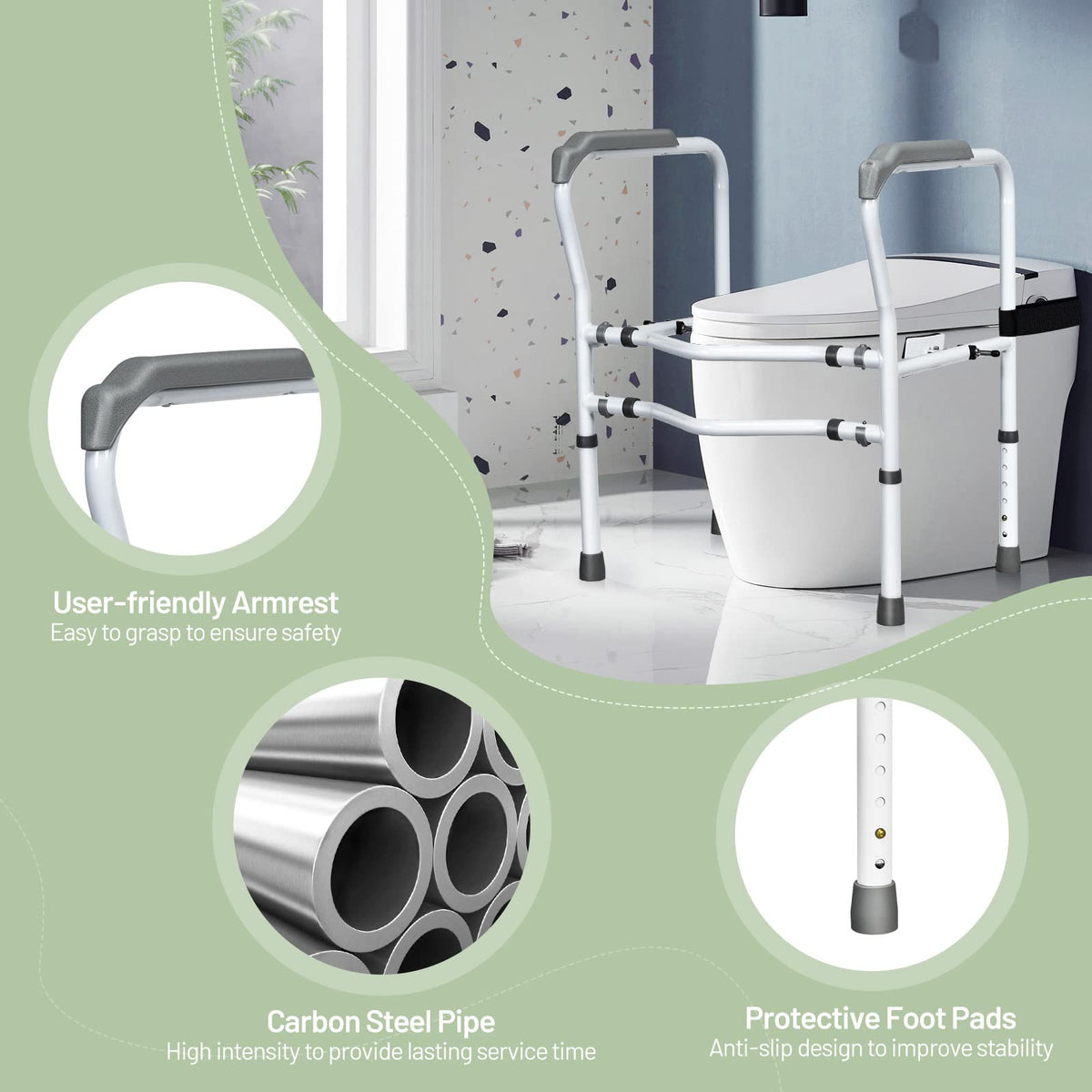 GYMAX Toilet Safety Frame & Rail, Adjustable Free-Assembly Medical Bathroom Assist Frame for Elderly with 360° Rotatable Clip