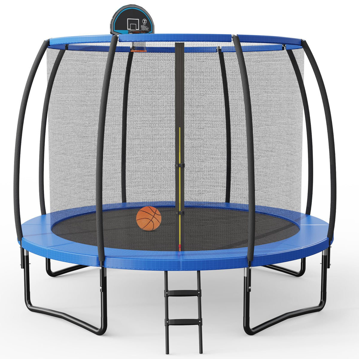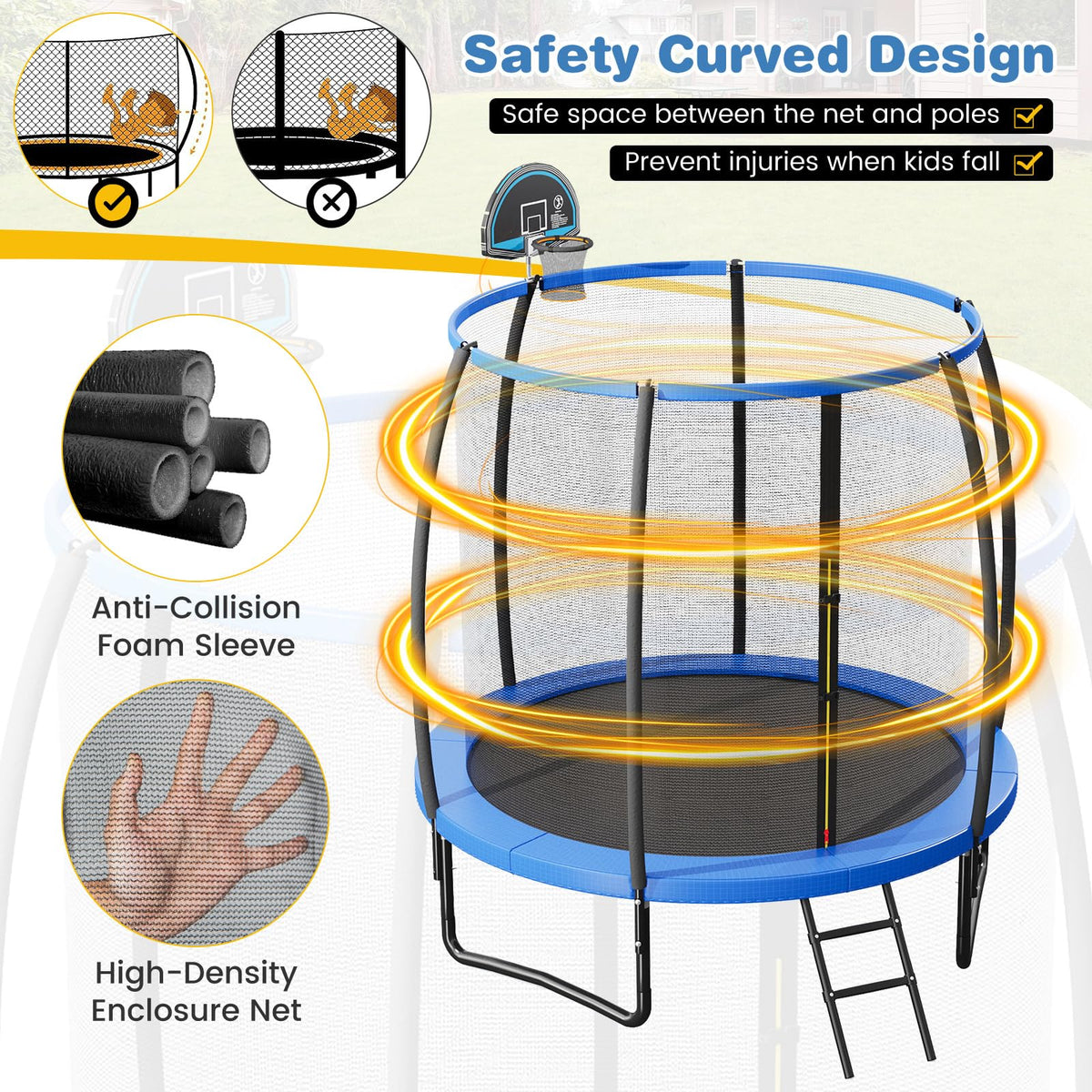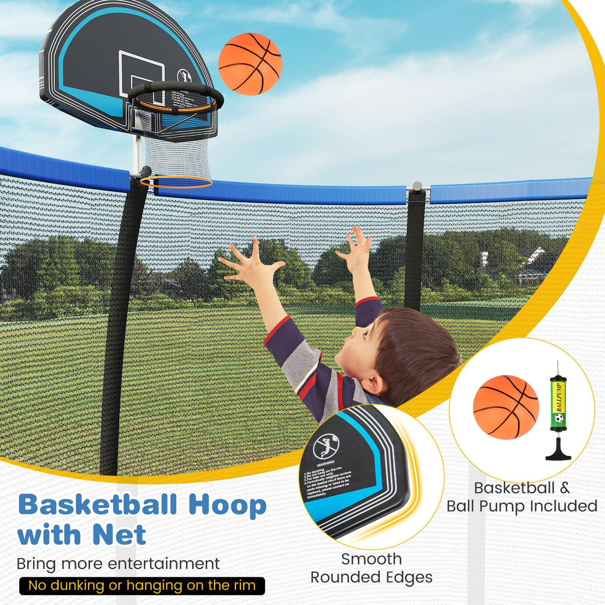 GYMAX Trampoline, 8FT 10FT 12FT Trampoline with Basketball Hoop, All Round Enclosure Net & Non-Slip Ladder