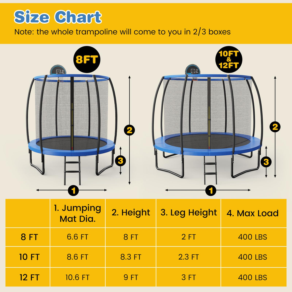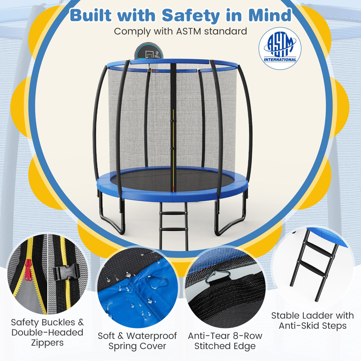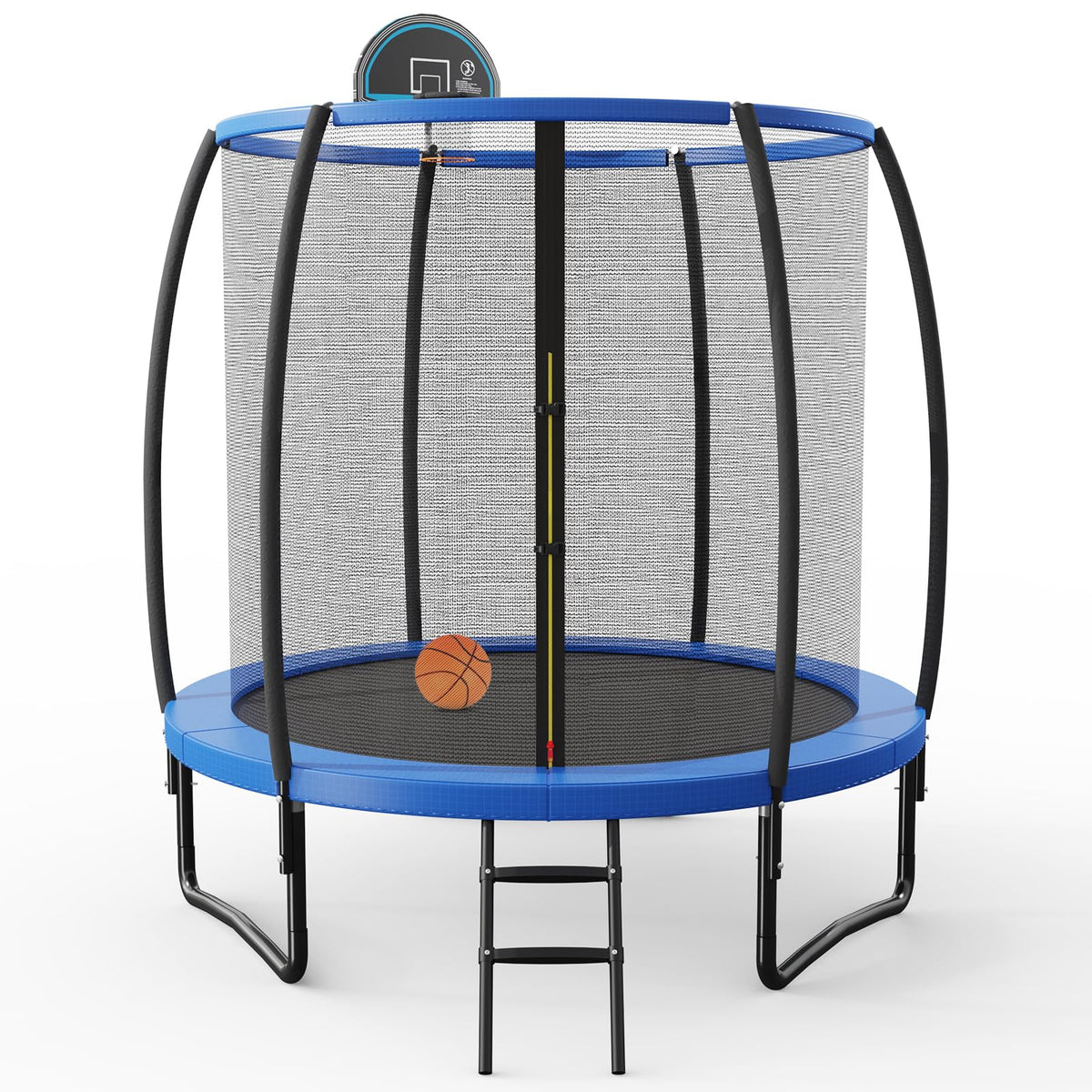GYMAX Trampoline, 8FT 10FT 12FT Trampoline with Basketball Hoop, All Round Enclosure Net & Non-Slip Ladder