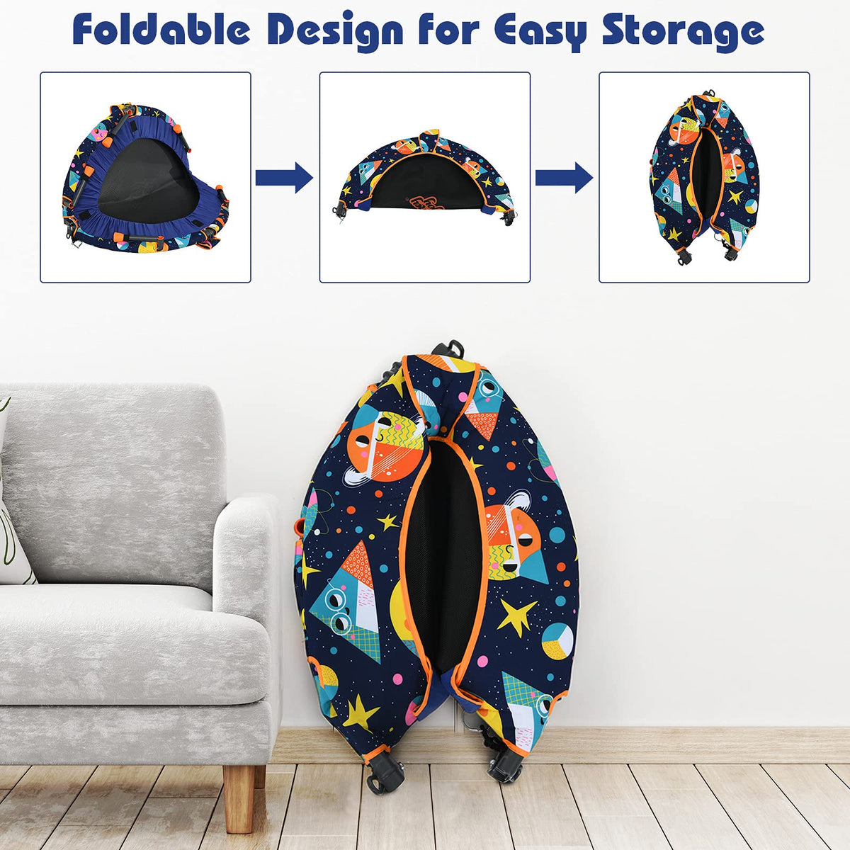 - Foldable Design & Easy Storage: When not used, the trampoline set can be quickly folded in to compact footprint, which can be easily stored under bed, in any corners or put in boots for entertainment in outdoors.