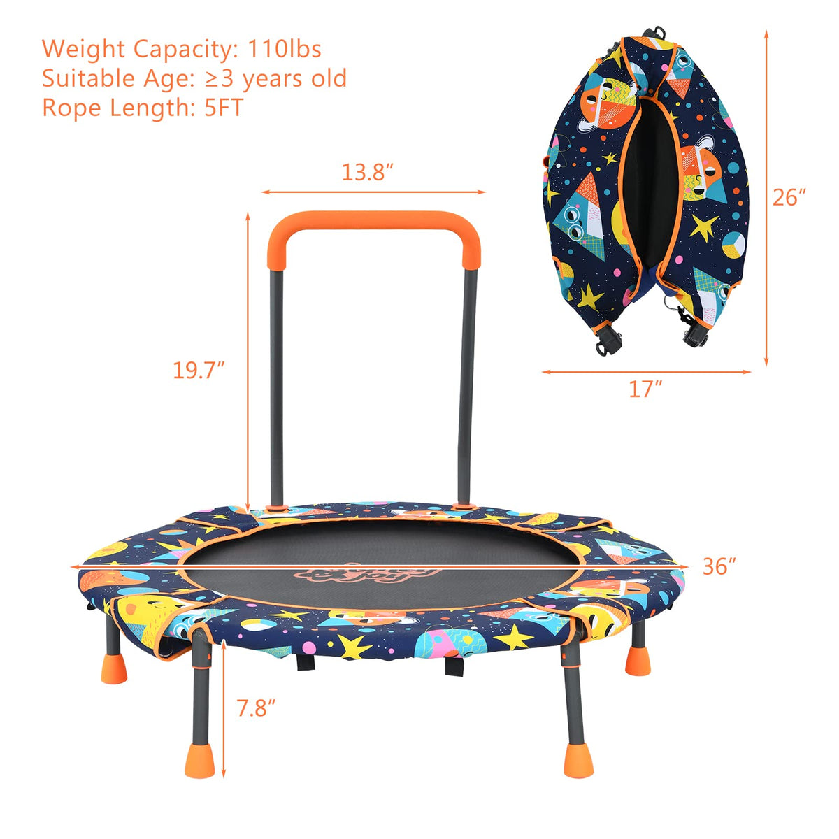 - Jumping Safely: Five solid steel legs offer weight capacity up to 110lb while anti-slip footpads improve stability and protect your floor from scratches. Additionally, non-slip handrail allows kids to grip even when their hands are sweaty, keeping them safe and balanced during jumping.
