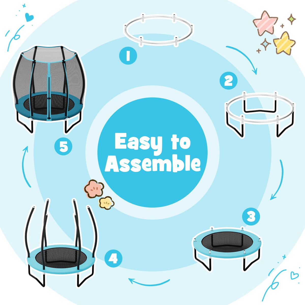 - 6-Step Installation: The assembly for this toddler trampoline is super easy with 6 clear steps, and we have also upload the installation video online for reference.