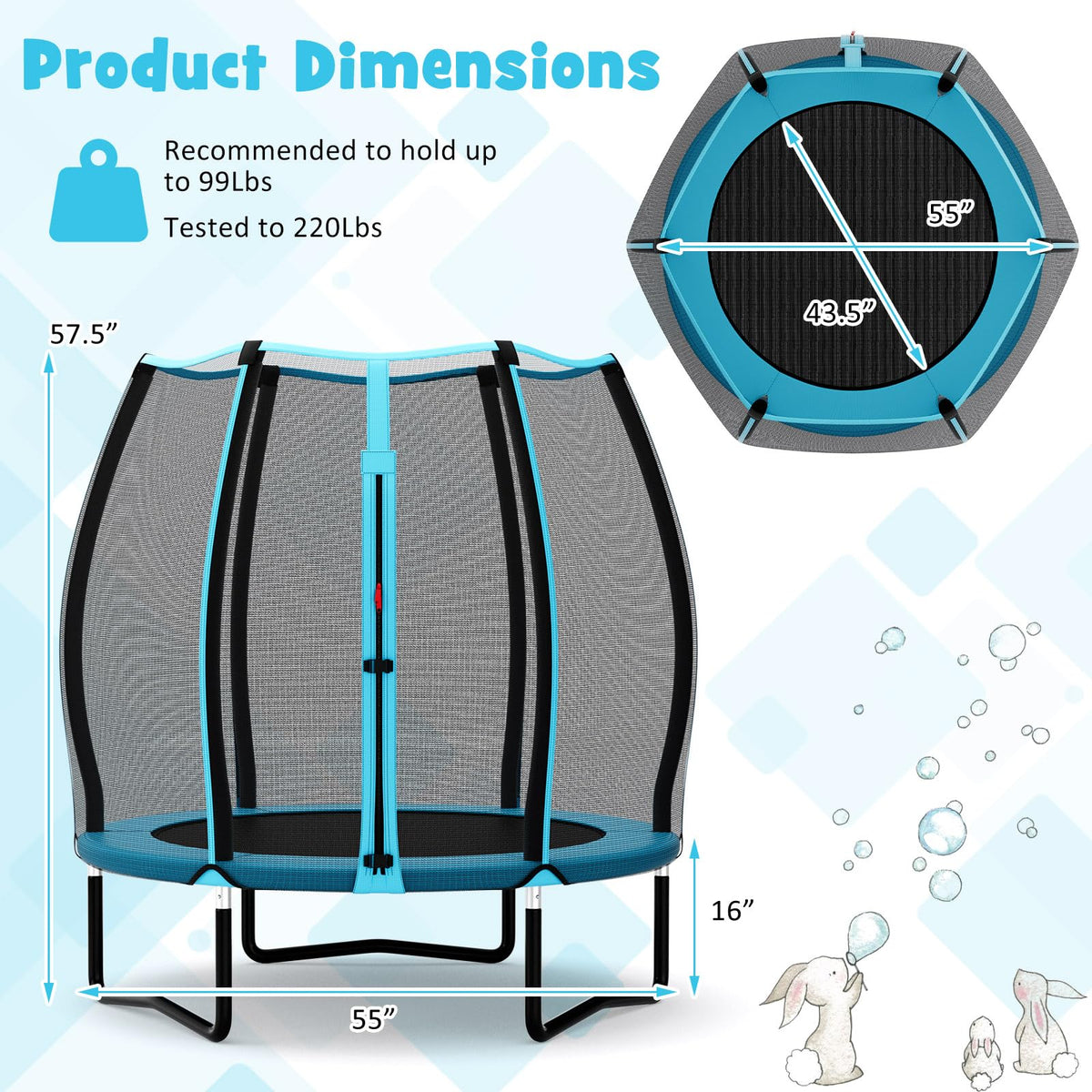 GYMAX Trampoline for Kids, 55" Toddler Trampolines with All-Round Enclosure Net