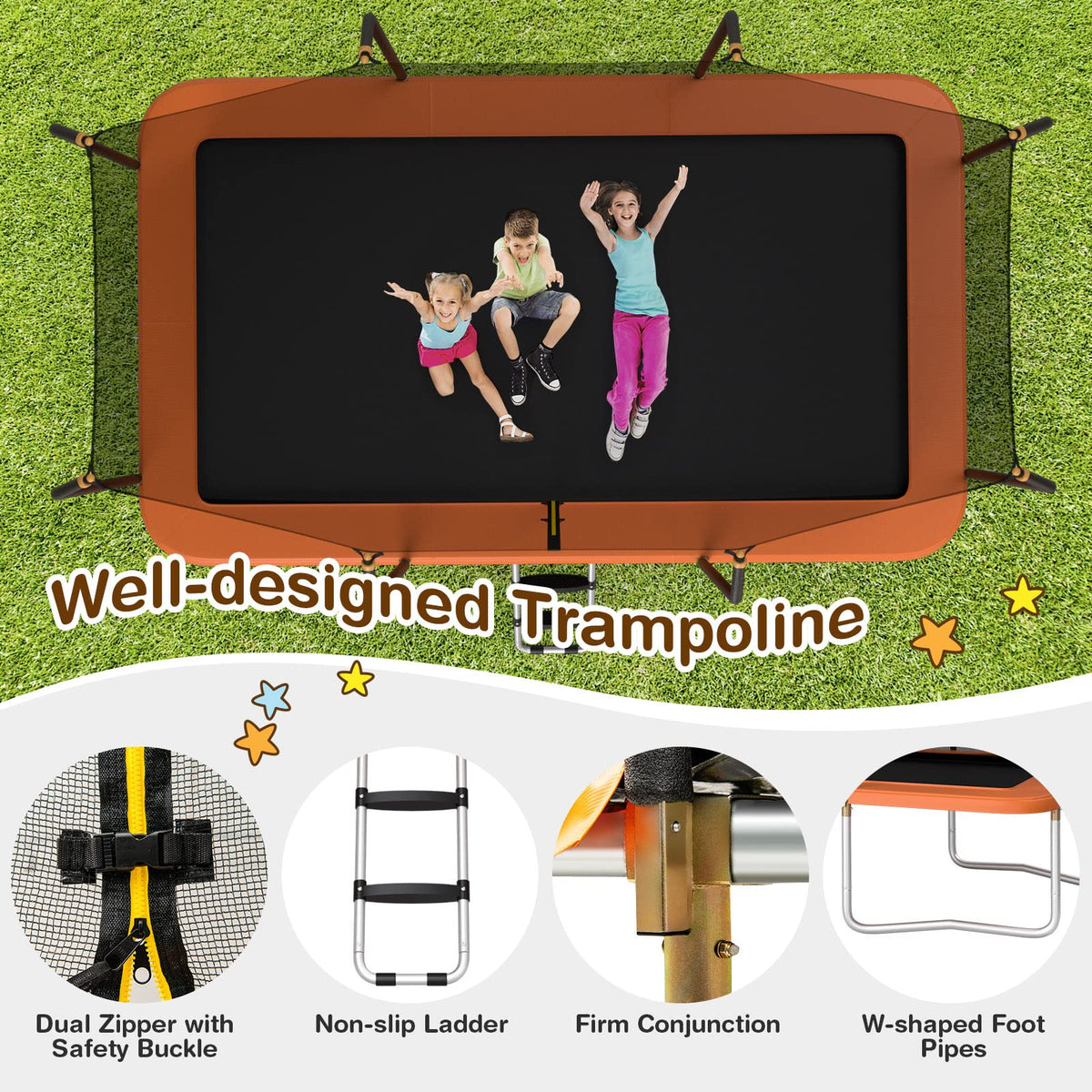 - Perfect Gift for Kids: The recreational trampoline is equipped with a non-slip ladder for easy access. Double zipper with buckle is easy and safe for kids. It is suitable for backyard, garden and other open spaces. Get this rectangular trampoline for both kids and adults and having perfect family time.