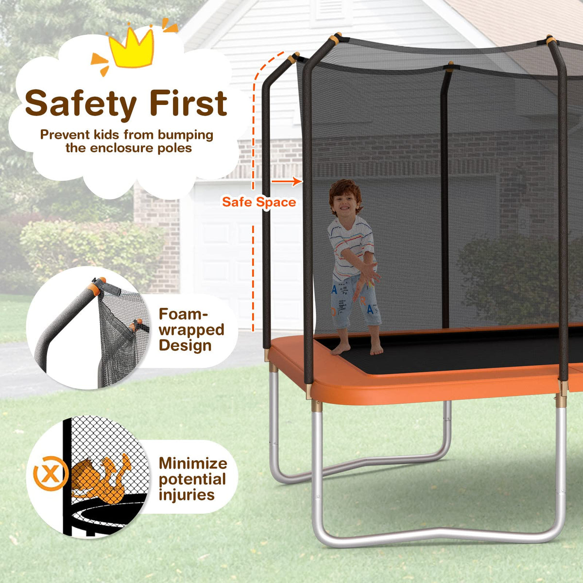- Safety Jumping for Better Reliability: Foam wrapped frame with U-shaped foot pipes ensure excellent stability. Safety space between pipe and enclosure net prevent you and your little hit on frame. Meanwhile, seamless jumping pad and spring cover prevents hands or feet from being caught in the gap. Past ASTM test for reliable choice.