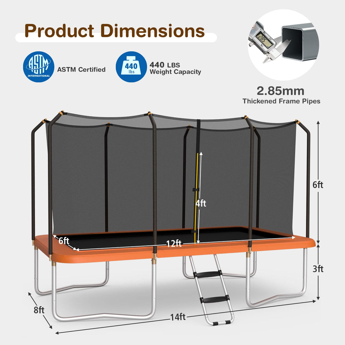 GYMAX Trampoline for Kids, ASTM Approved 14FT Rectangular Trampoline with Enclosure Net & Non-Slip Ladder