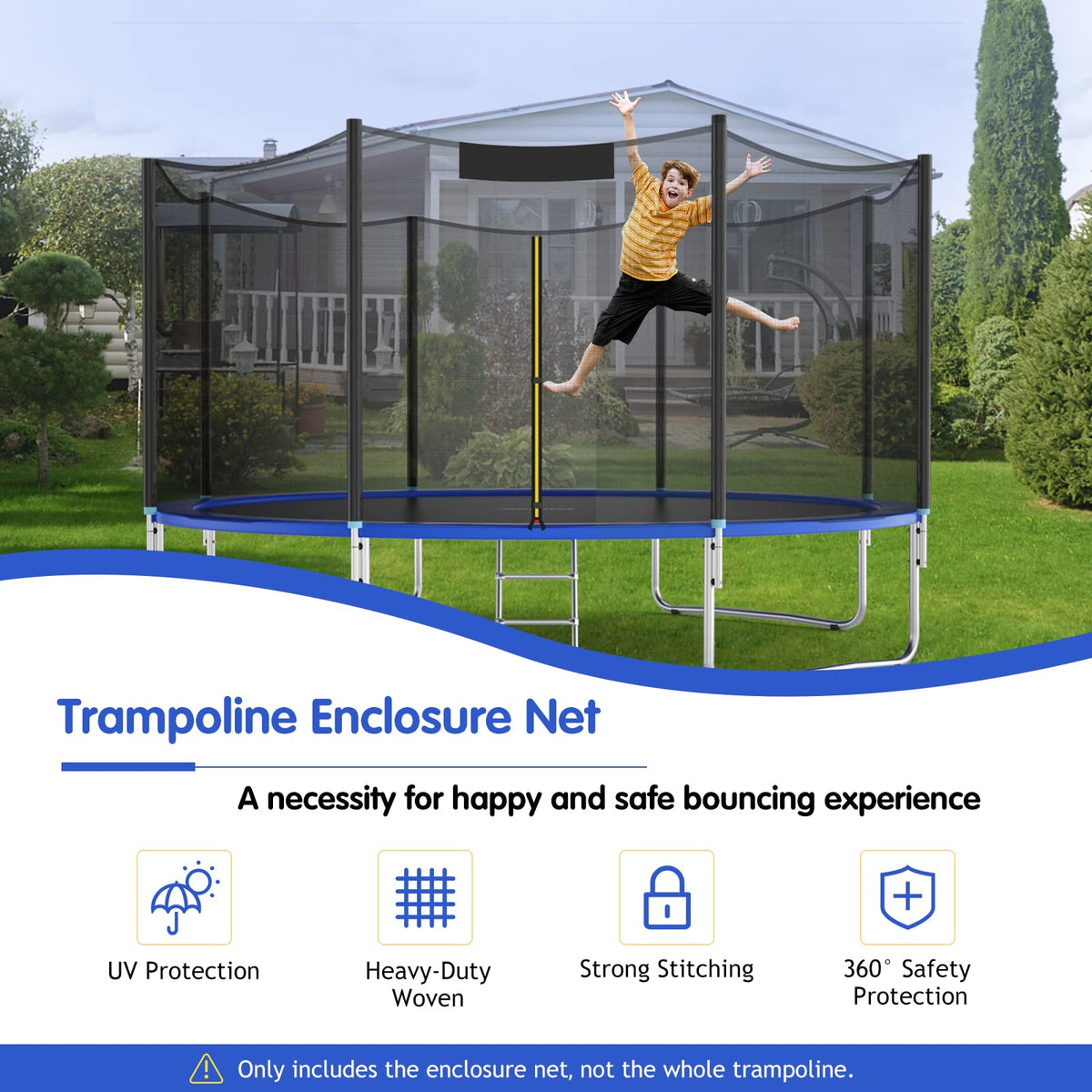 GYMAX Trampoline Net, Trampoline Enclosure for 8 10 12 14 15 16Ft Round Trampoline with Double-Headed Zippers & Buckles