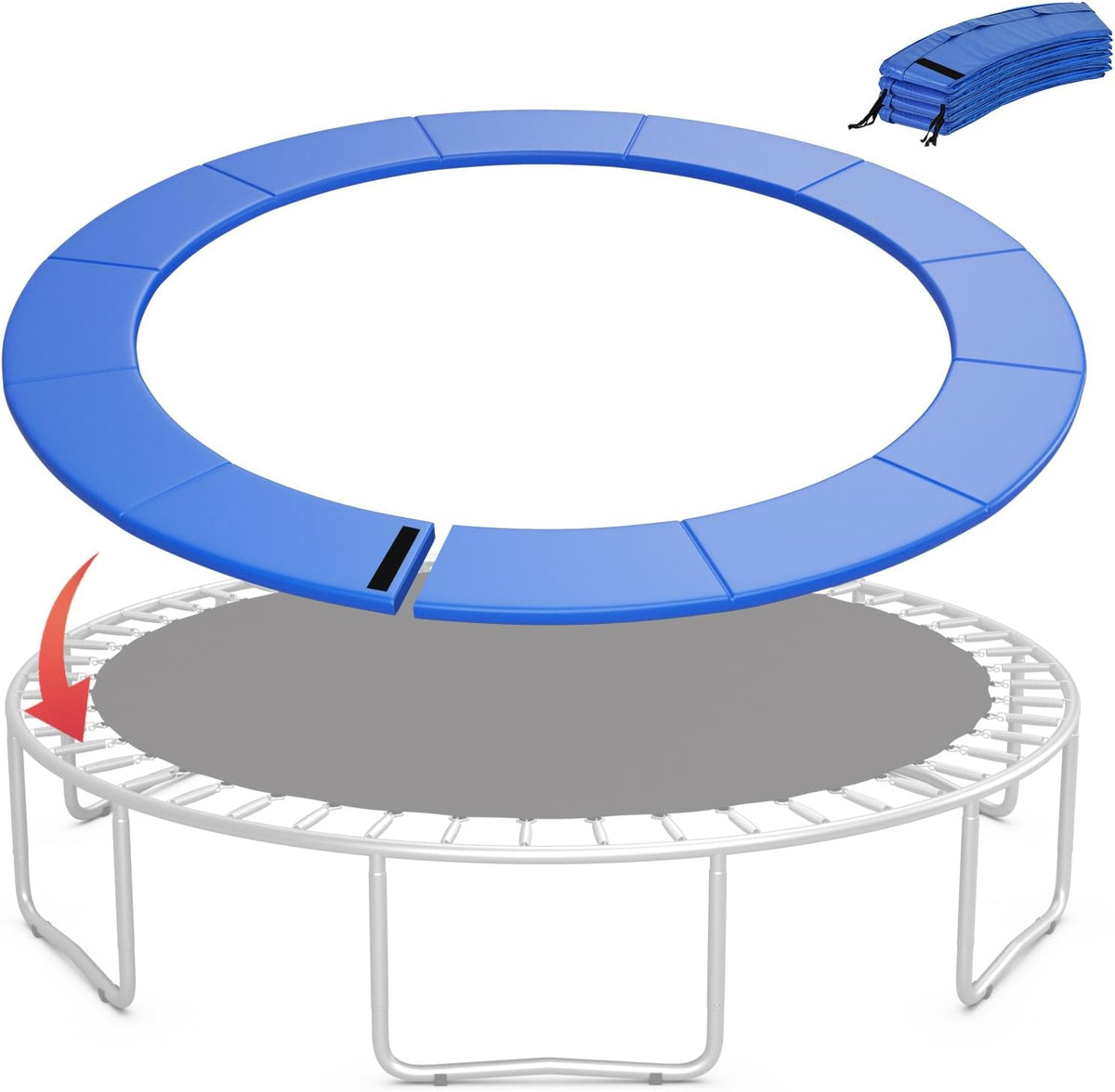 Tailored for 8ft/10ft/12ft/14ft/15ft/16ft trampolines, our pad ensures a perfect fit. Crafted from premium materials like PVC, EPE foam, and PE, it can cover the exposed trampoline springs and provide effective cushioning for users. Plus, our upgraded open end with hook and loop fastener makes installation a breeze. You can install it without removing the trampoline net and mat, saving you time and effort. What’s more, the elastic straps will fasten the pad in place without moving. So why wait? Seize this fantastic chance to enhance your trampoline experience and make every bounce a joyous memory for your family and kids!