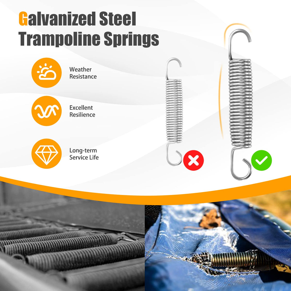 - Premium & Durable Material: The heavy-duty trampoline springs are made of well-selected galvanized steel, which is characterized by excellent rust resistance and durability. This replacement kit is a perfect solution to those dangerous, rusted and worn-out trampoline springs.