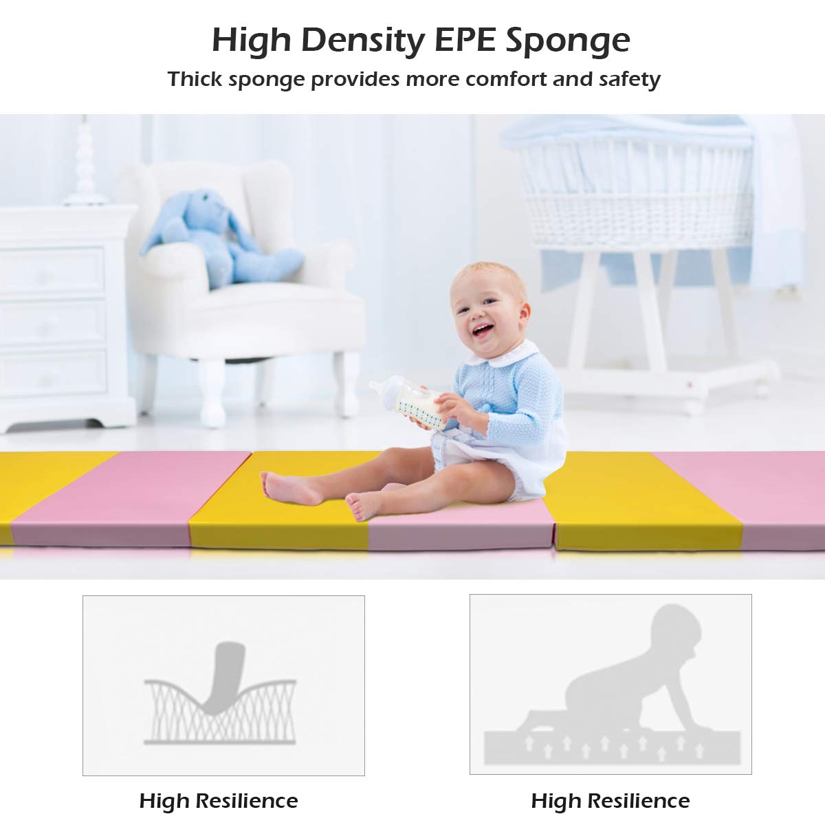 - Comfortable and Safe EPE foam: The padding is 2'' of thick high-density EPE foam, it maintains its shape over time, and offers moderate firmness with flexibility, and it has good resilience and non-slip functions, which can protect your knees, wrists, elbows and back when doing exercise.