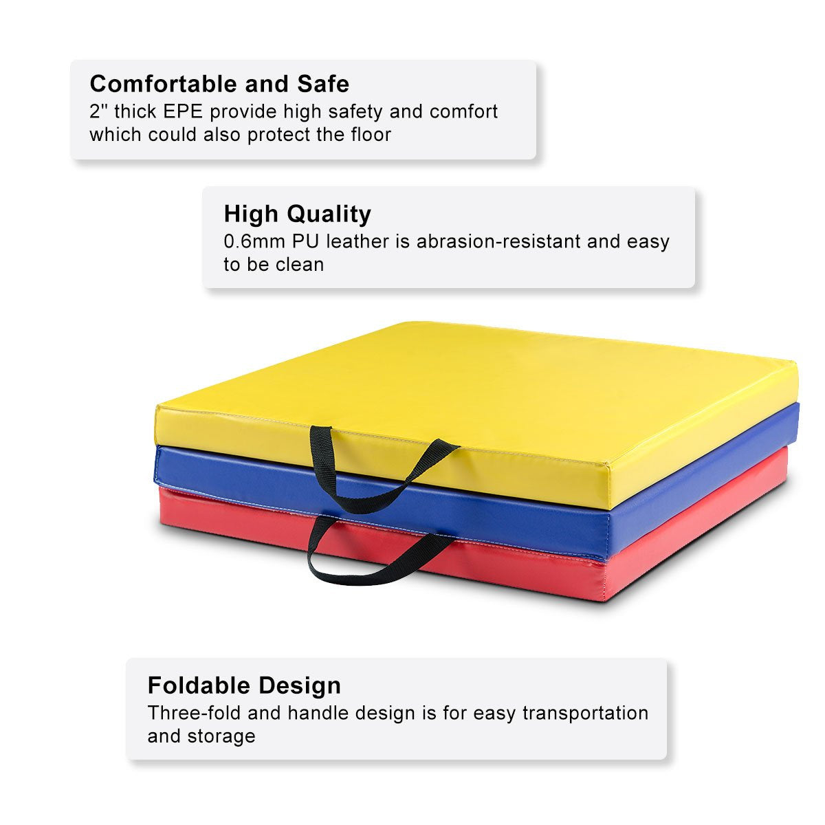 - Tri-fold Design: Two carrying handles makes transportation convenient, and the tri-fold design is compact to fit easily into closets, car trunks, or in storage units at the gym.