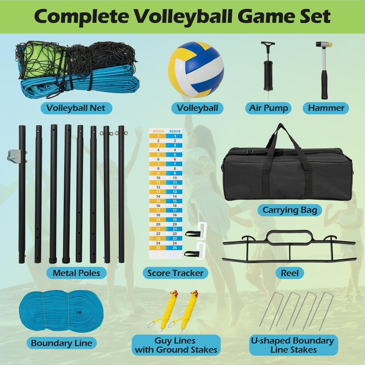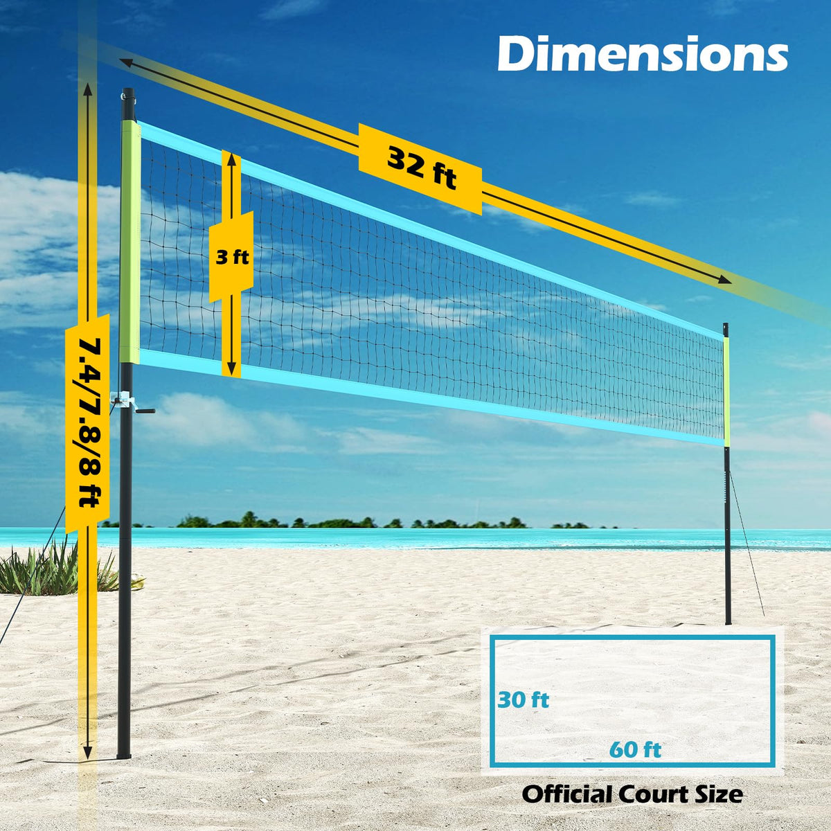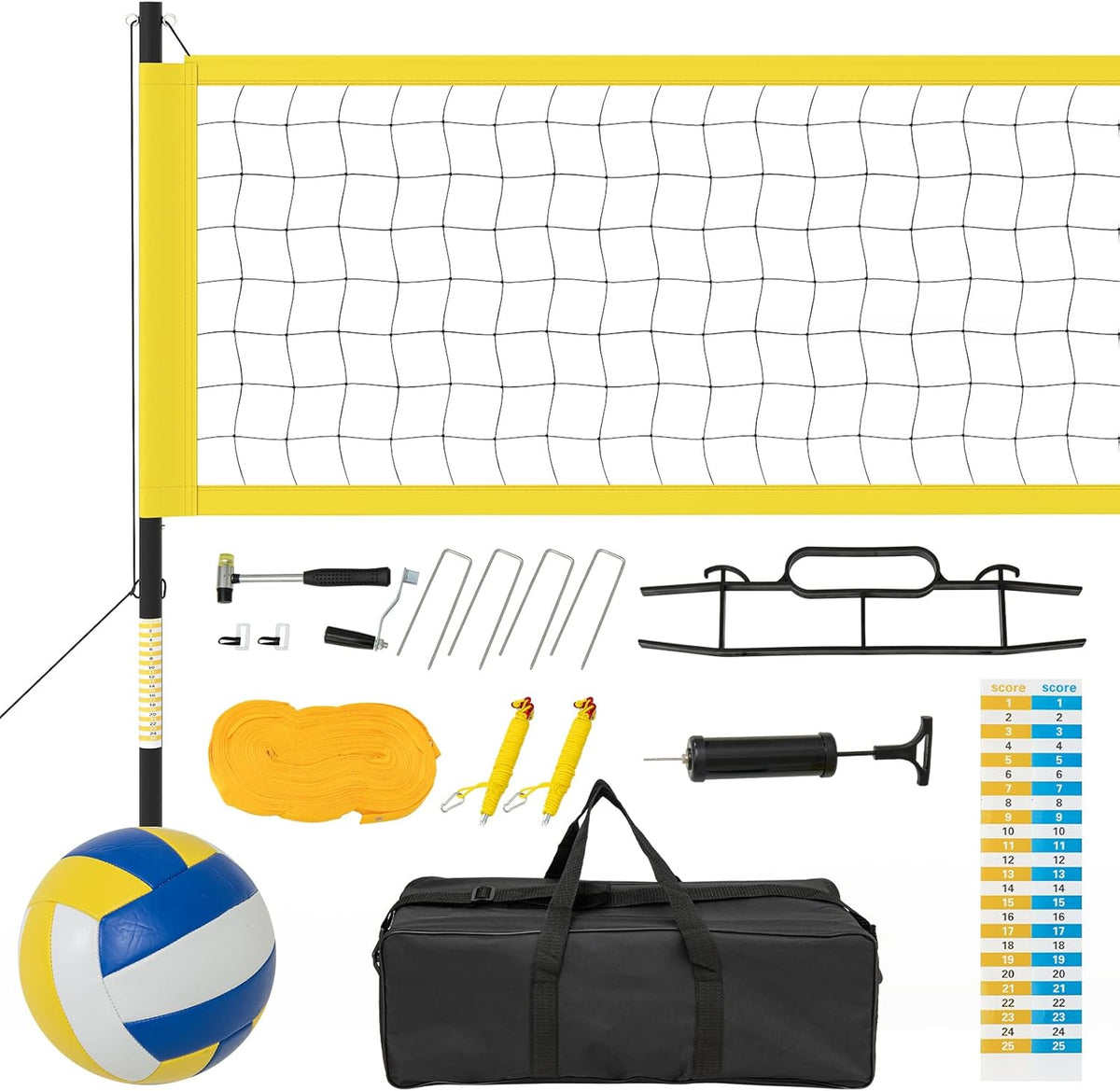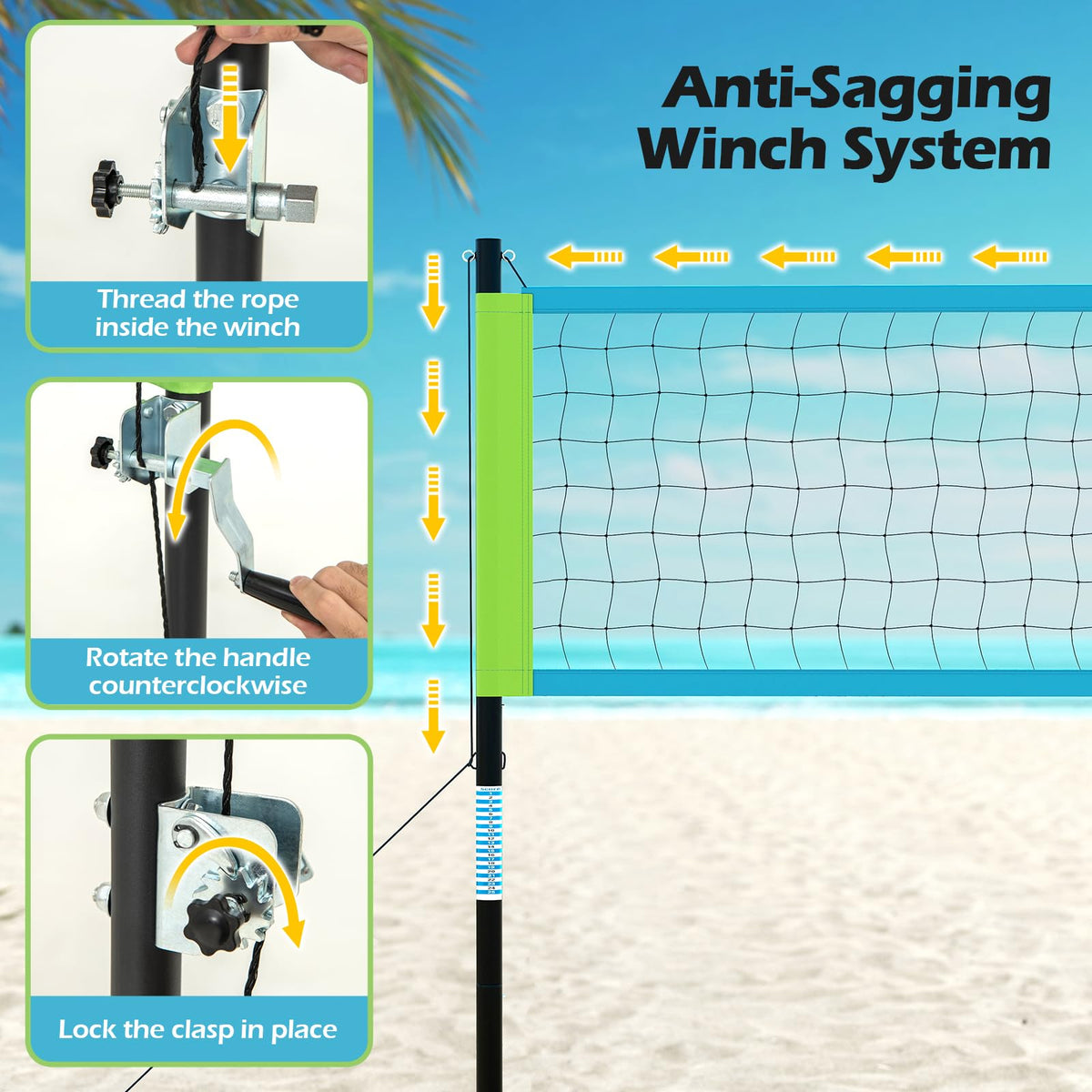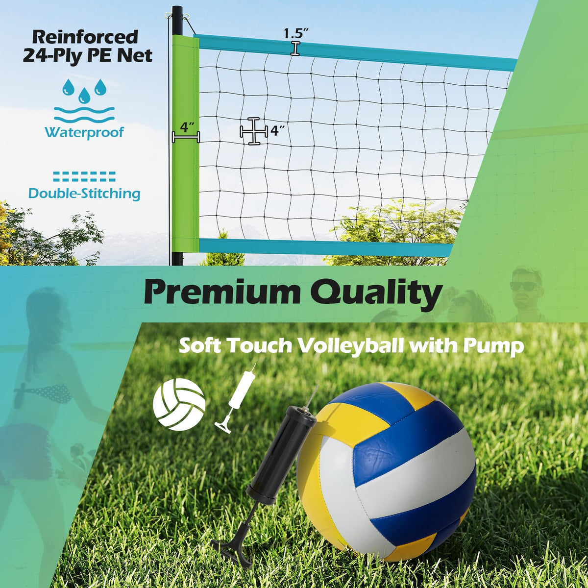 GYMAX Volleyball Net Portable Volleyball Set with Adjustable Poles & Anti-Sag Design