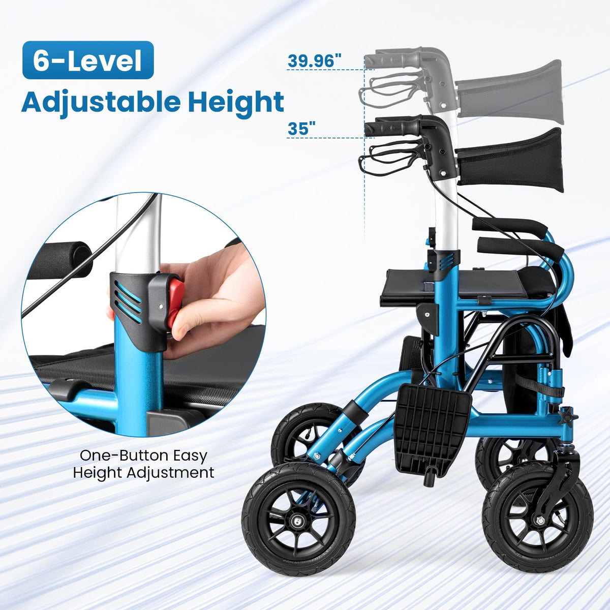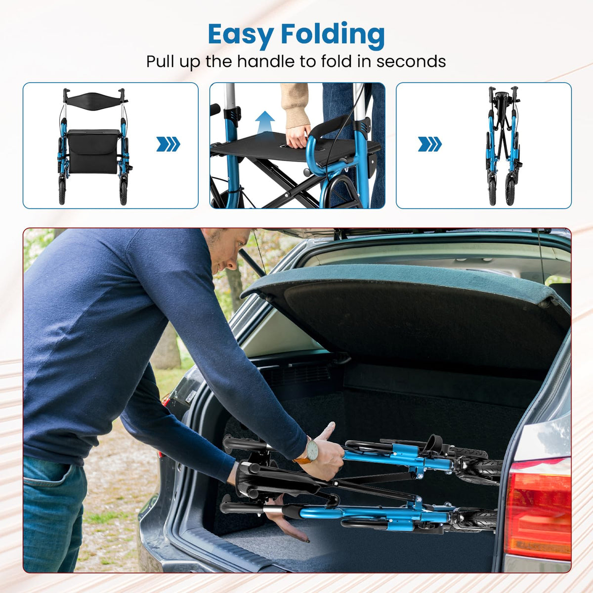 GYMAX Walkers for Seniors Folding Rolling Walker with 8" Wheel