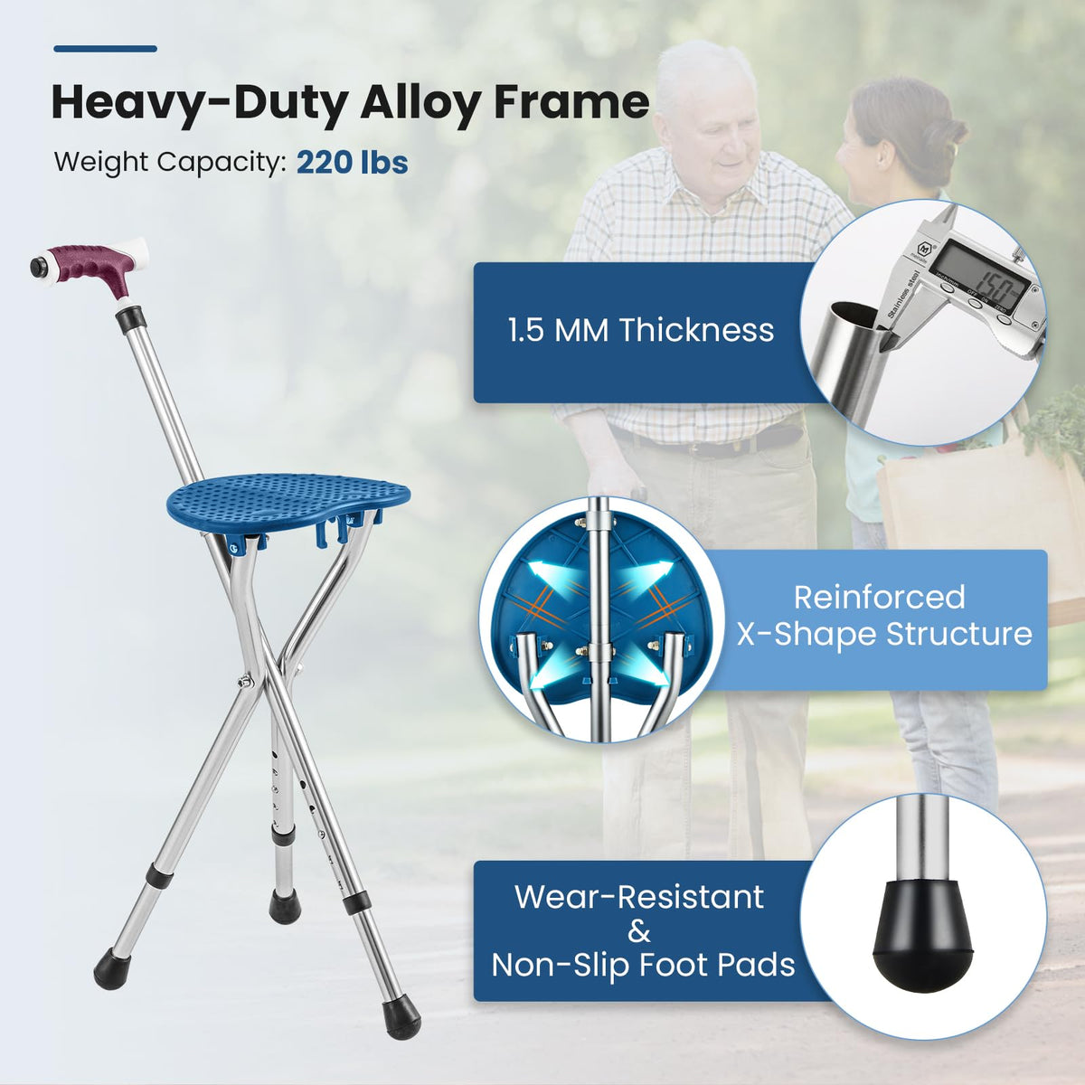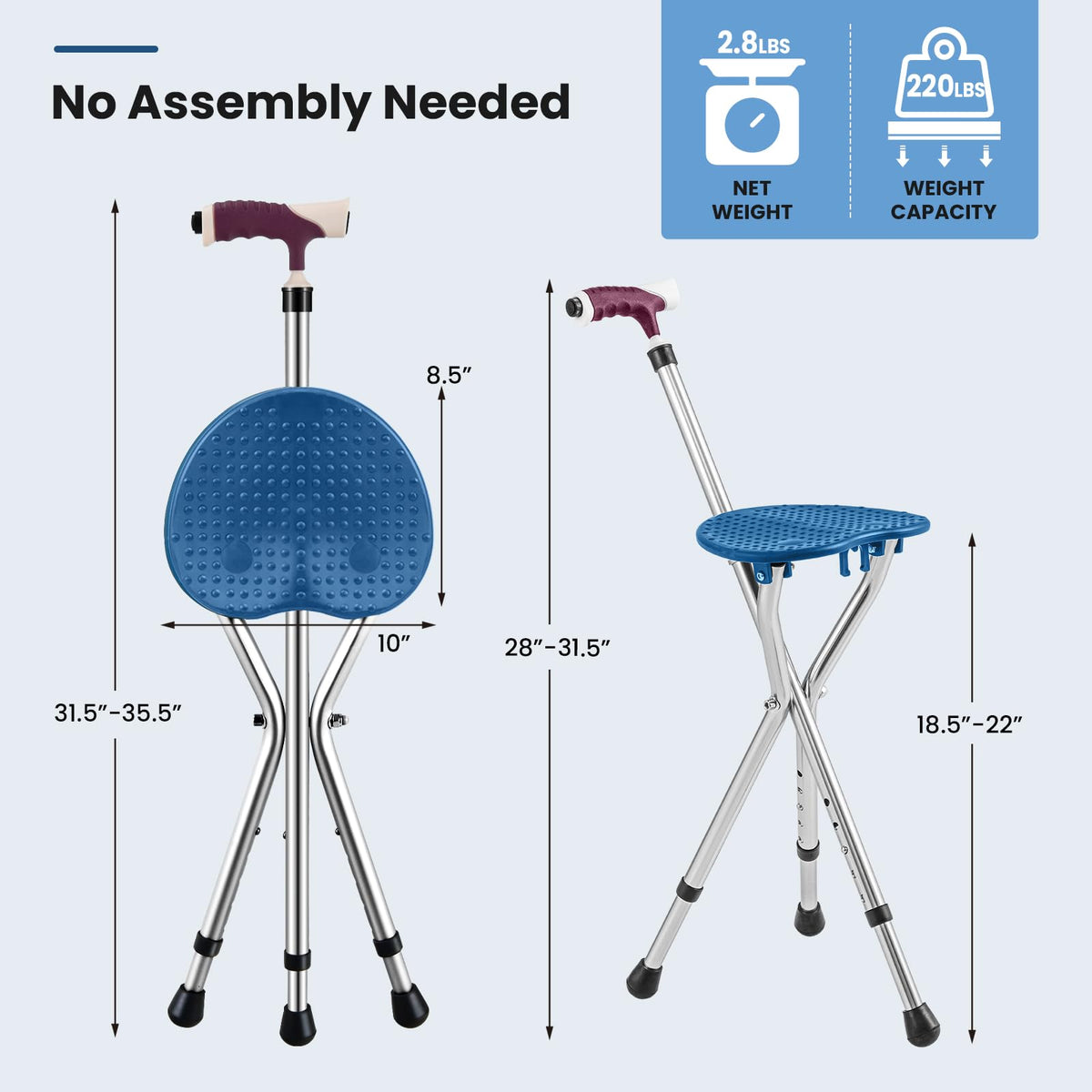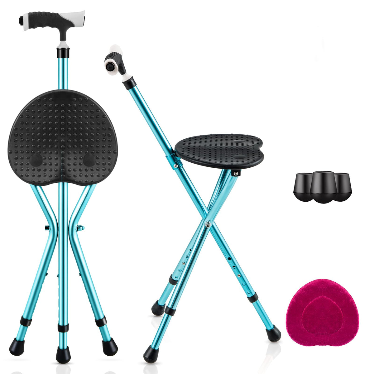 - Wonderful Gift for Families: GYMAX walking stick chair combo is a perfect gift for family, which help to release pain on long time walking or standing. Suitable for all surfaces, this foldable cane would make walking easier.