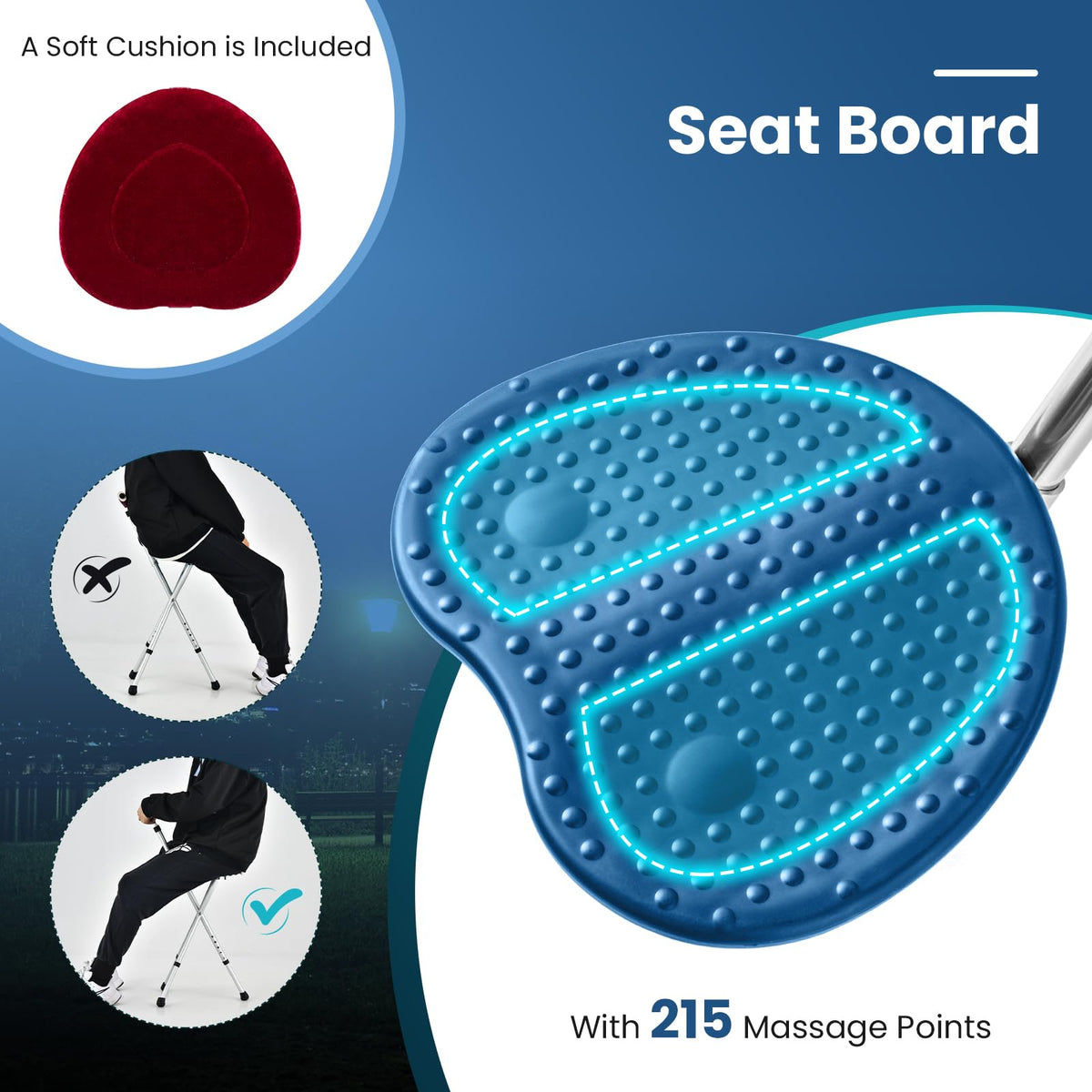 GYMAX Walking Stick Chair Combo, Folding Cane Seat with LED Light, Massage Seat Board & Ergonomic Handle