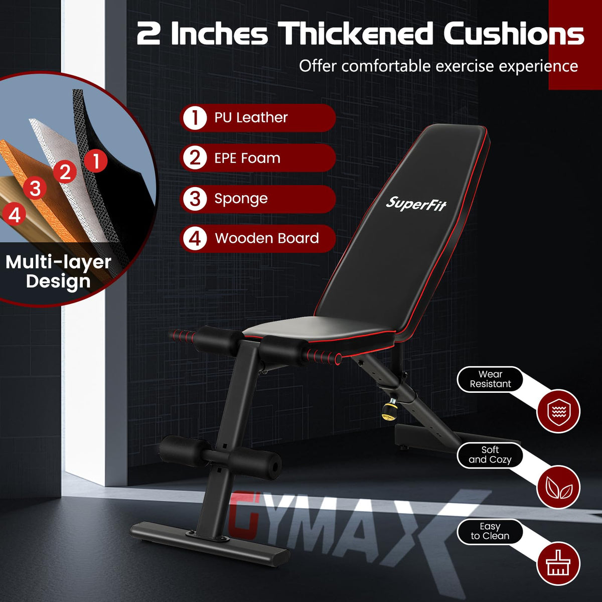 GYMAX Weight Bench, Adjustable Bench Press with 8 Back Positions & 3 Foot Positions, Padded Back & Seat Cushions
