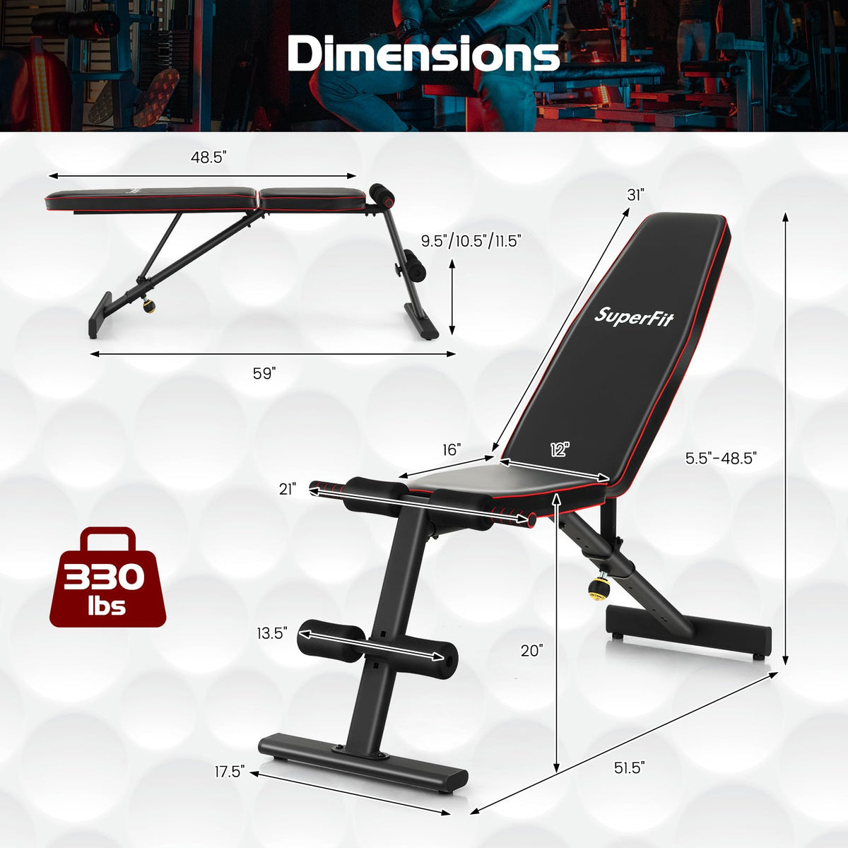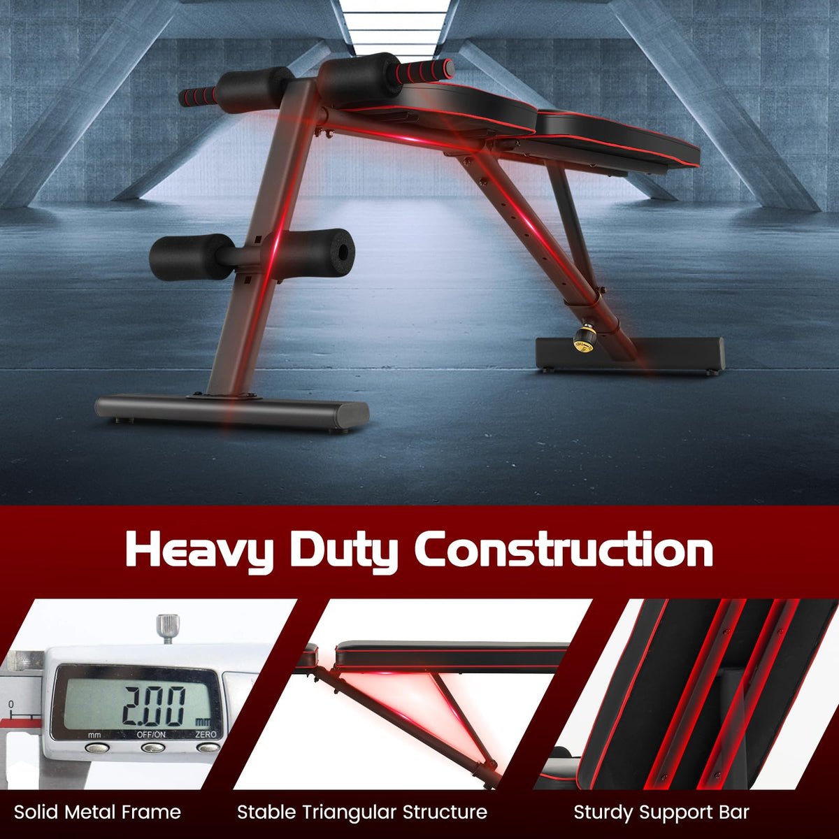 - Heavy Dusty Construction: Made of sturdy metal, GYMAX workout bench is constructed with a stable triangular structure and extra reinforced bars, holding up to 330lbs. Furthermore, the adjustable non-slip foot pads adapt to uneven ground and ensure its stability.