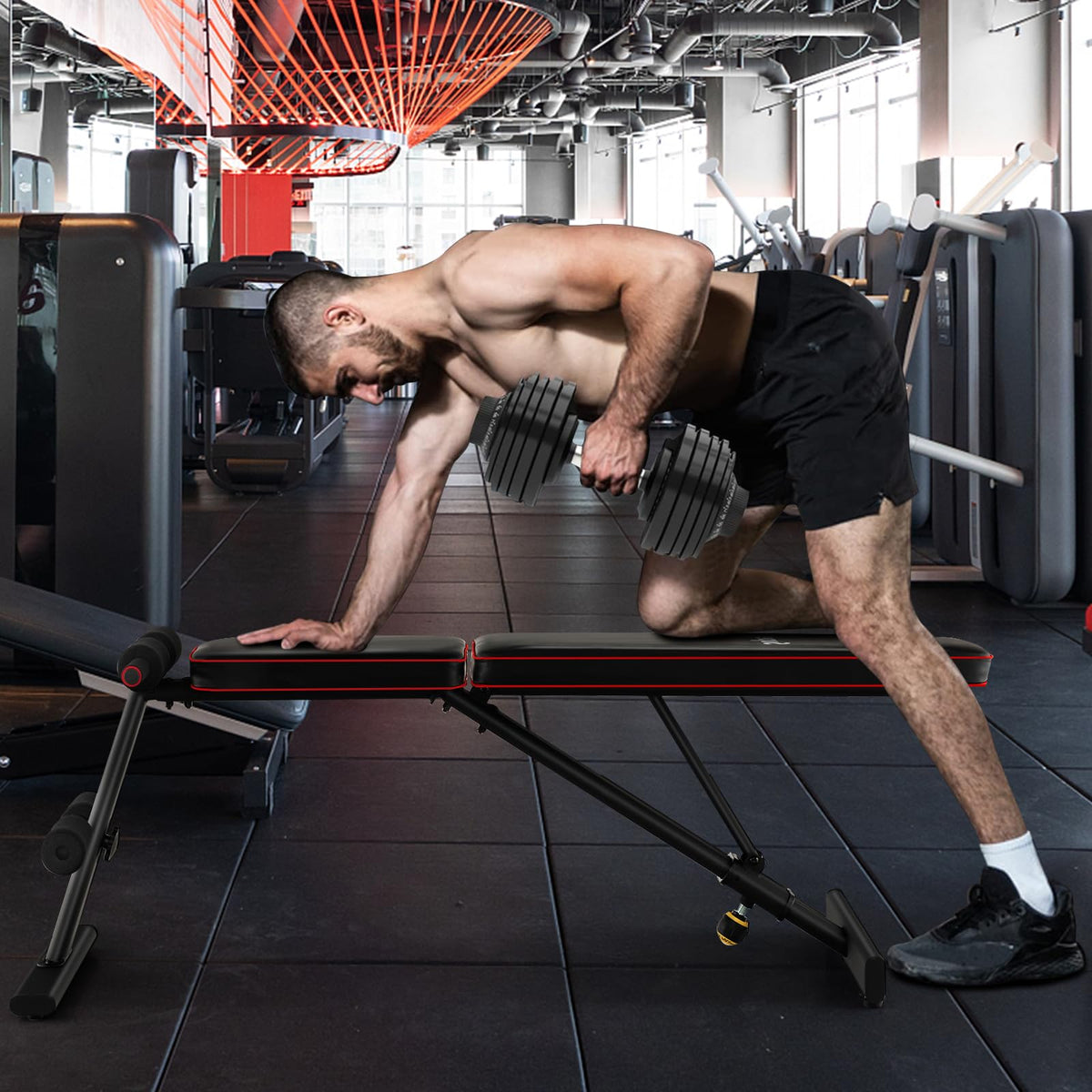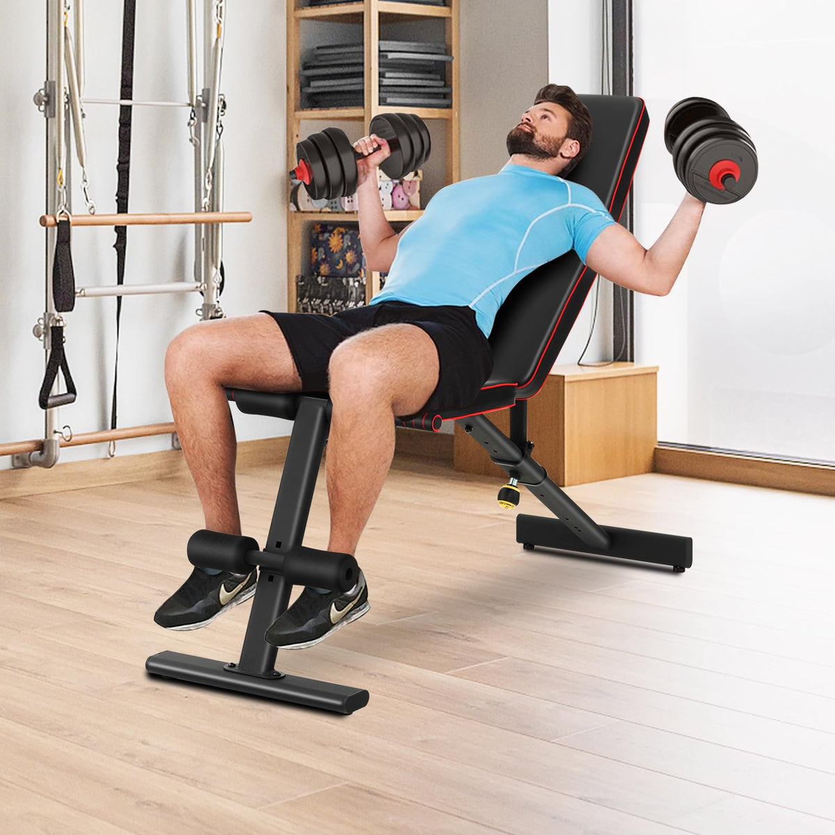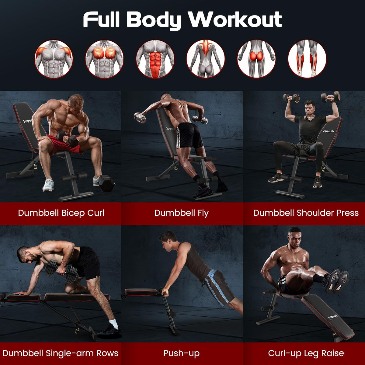 - All in 1 Exercise Equipment: This workout bench is suitable for dumbbell bicep curl, dumbbell fly, dumbbell shoulder press, dumbbell single-arm rows, push-up, curl-up leg raise and more.