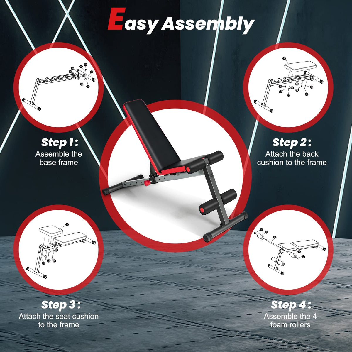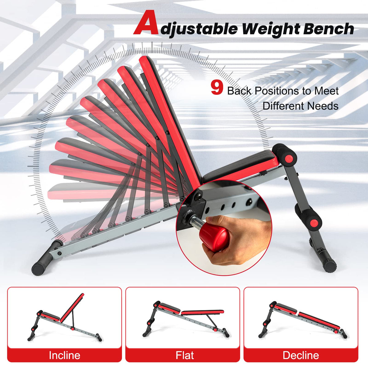 GYMAX Weight Bench, Adjustable Workout Bench Sit Up Bench with 9-Level Incline, Decline Ab Bench Press for Home