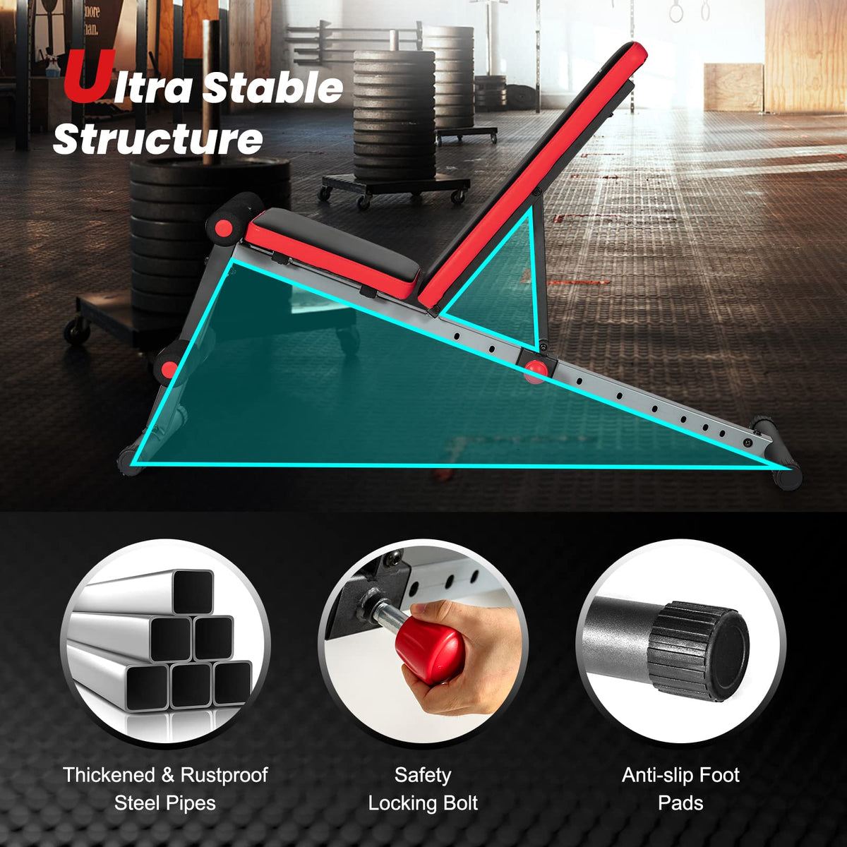 - Stable & Heavy Duty Steel Structure: Made of thickened and rustproof steel pipes, this workout bench for home ensures high stability, durability as well as strong load capacity of up to 410 lbs (please note: don't use workout equipment more than 110 lbs). Besides, the triangular structure and anti-slip foot pads provide extra steady support.