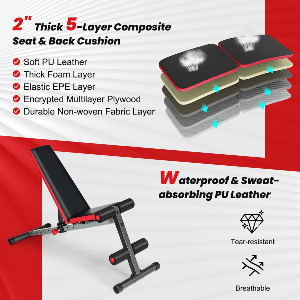 - Ultra Comfortable Workout Experience: The 2" thick 5-layer composite seat & back cushion and soft foam rollers offer comfortable exercising experience. Covered with premium PU leather, the cushion is skin-friendly and sweat-absorbing. And the high elastic foam padding provides a good cushioning effect to prevent getting injured.