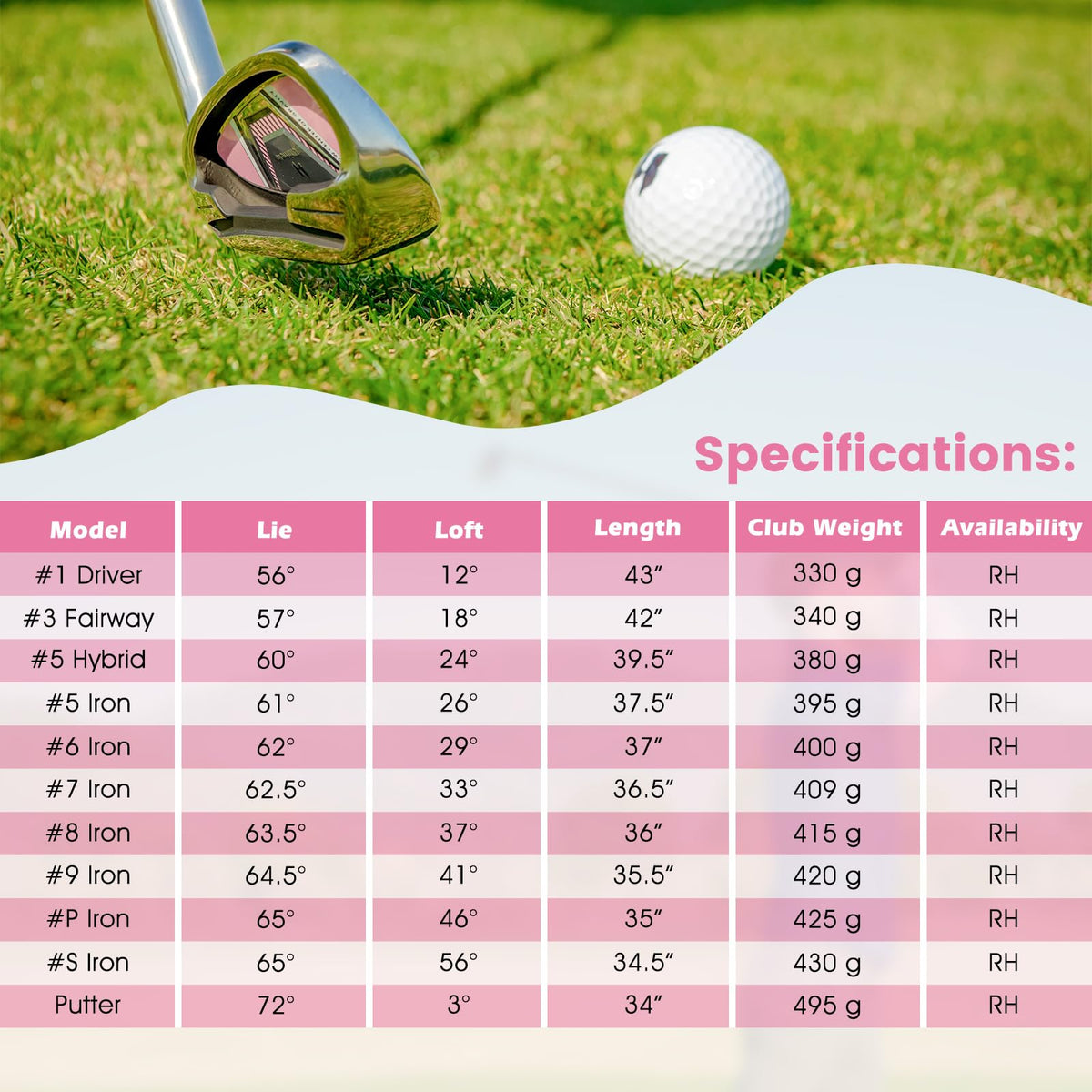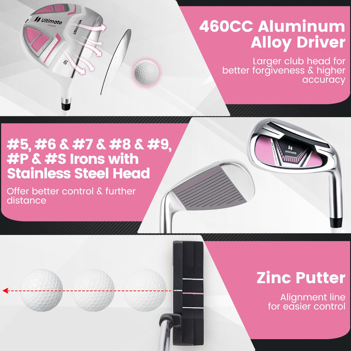 GYMAX Women Golf Clubs, 16PCS Right Handed Golf Set Includes Graphite 460CC Driver