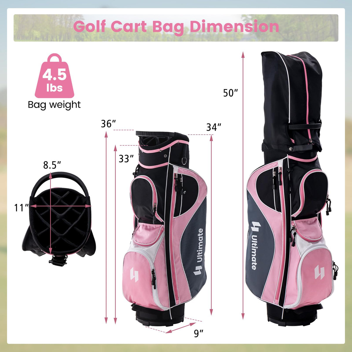 - 14 Way Golf Bag with Rain Hood: The golf cart bag has 14-way dividers, easily holding the complete golf set. Different pockets would keep all your golf accessories well during game. A rain hood is also included for better protection.